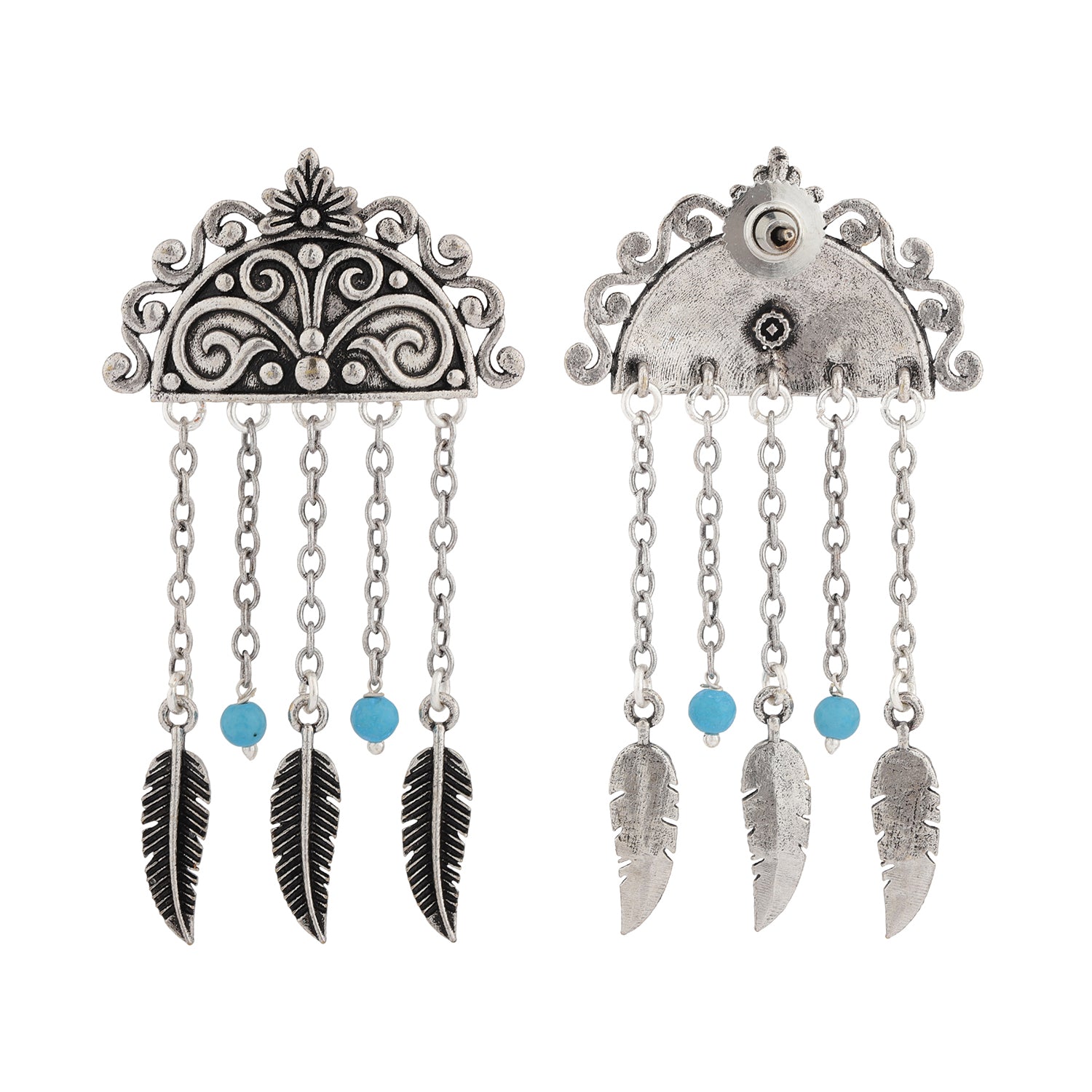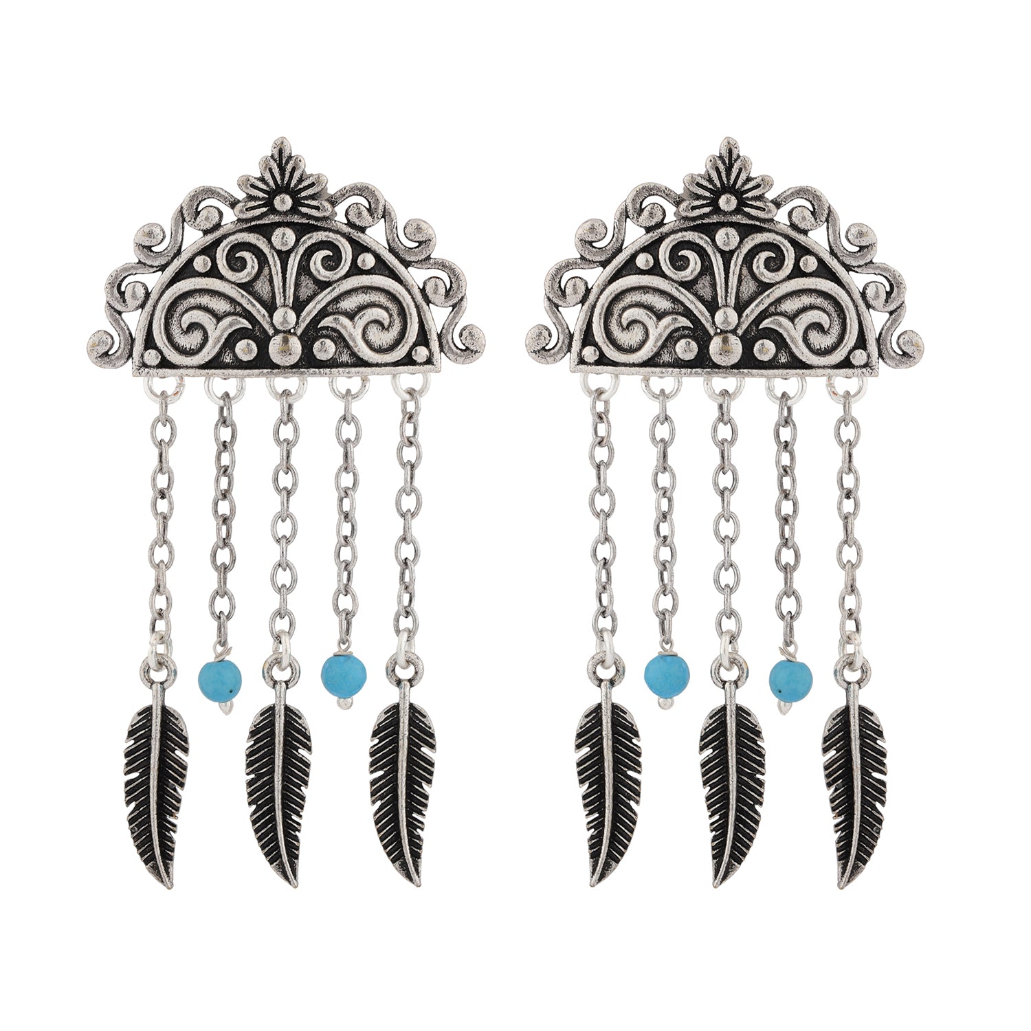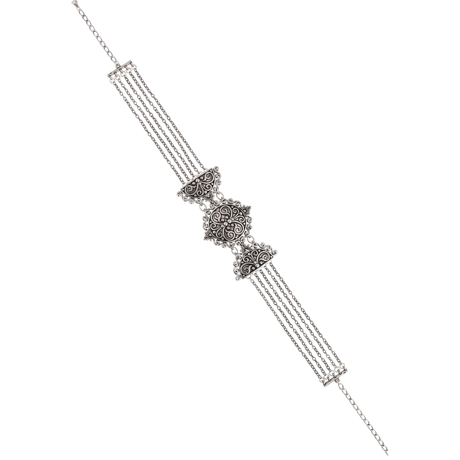 The Boho Tribe Nomadic Oxidised Choker Necklace Set is a stunning piece of jewelry crafted from high-quality brass with a silver oxidised plating, embodying the free-spirited essence of bohemian culture. This set features intricate designs with detailed patterns and turquoise accents, making it a perfect statement piece for any occasion. The collection is inspired by tribal and ethnic aesthetics, offering a unique and chic addition to your jewelry collection. Ideal for everyday wear, vacation, office, or special events like Holi, Diwali, and Valentine's Day, this necklace set is versatile and stylish. It makes an excellent gift for women, whether for a girlfriend, wife, mother, or sister, and is perfect for occasions such as Christmas, New Year, and Rakshabandhan. Pair it with both traditional and western outfits to elevate your look and express your individuality.