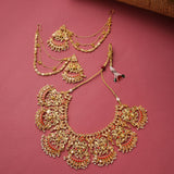 Showcase your traditional style with this 2 layered designer necklace set studded with kundan stones. Club this hair accessory with your ethnic or Indo-western attire.