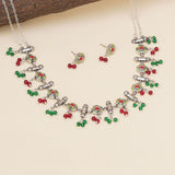 This silver plated necklace set is spunky and vivid; made with enamel and beads to create a striking look. The design is truly intricate and adorable and is filled with vibrant colours that will set your happy tone for the mood. Style Tip: If you want to stand out from the crowd without being too boisterous, this is the perfect set of jewelry for you.