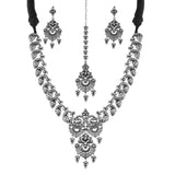 Make a statement with the Bodhi Collection Oxidized Necklace Set, crafted from brass material and adorned with an oxidized finish. The unique design and rustic appeal add a touch of bohemian elegance to your ensemble.Caring for your fashion jewelry: We,...