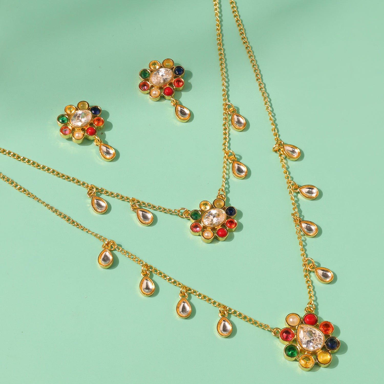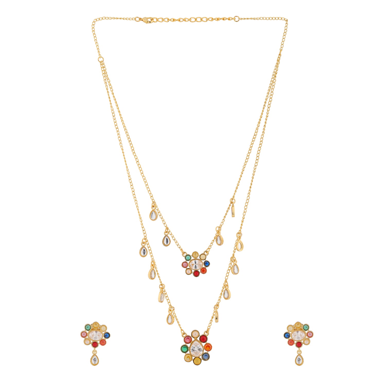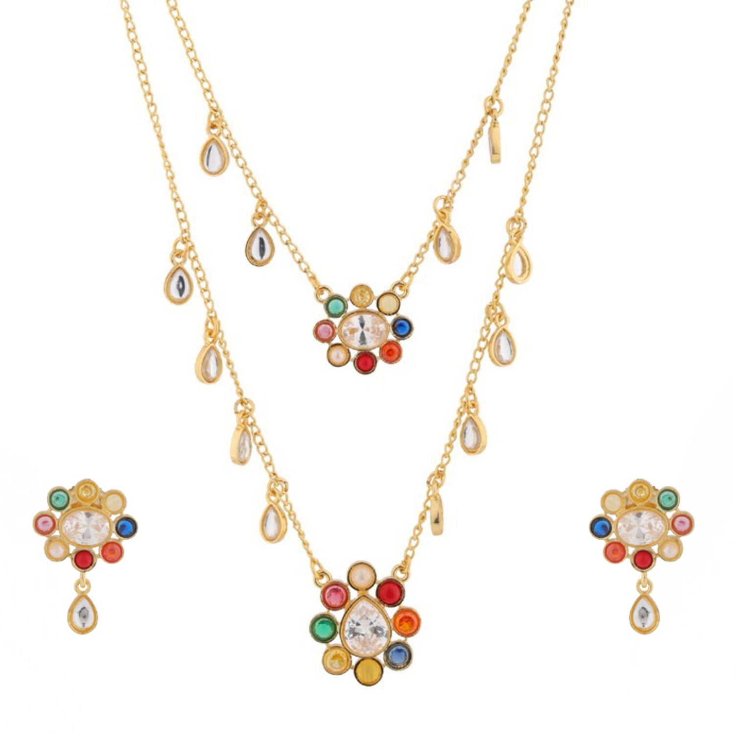 Navratan Rainbow Royals Layered Collar Necklace Set