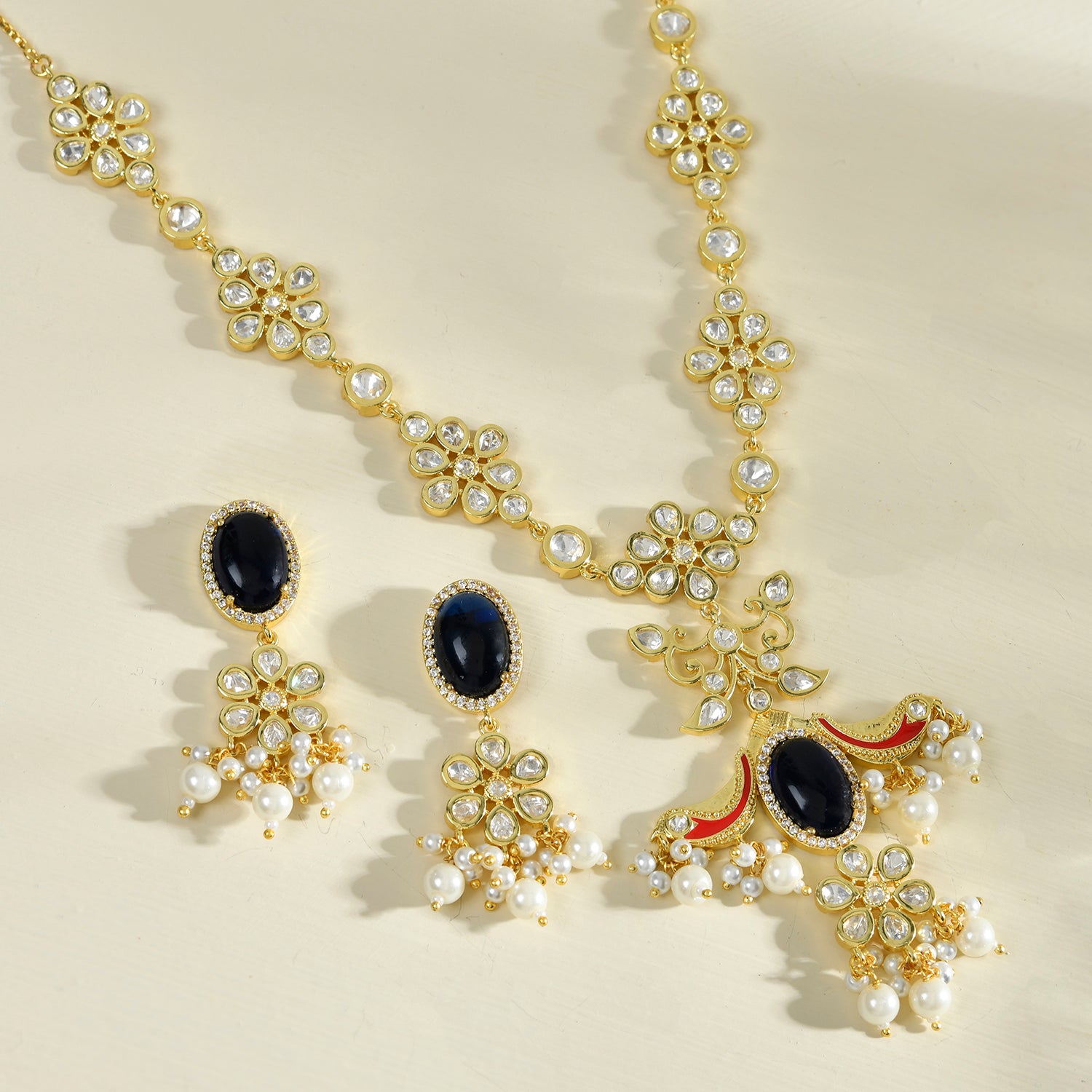 Sparkling Opulance Saphhire Plume American Diamond Necklace Set