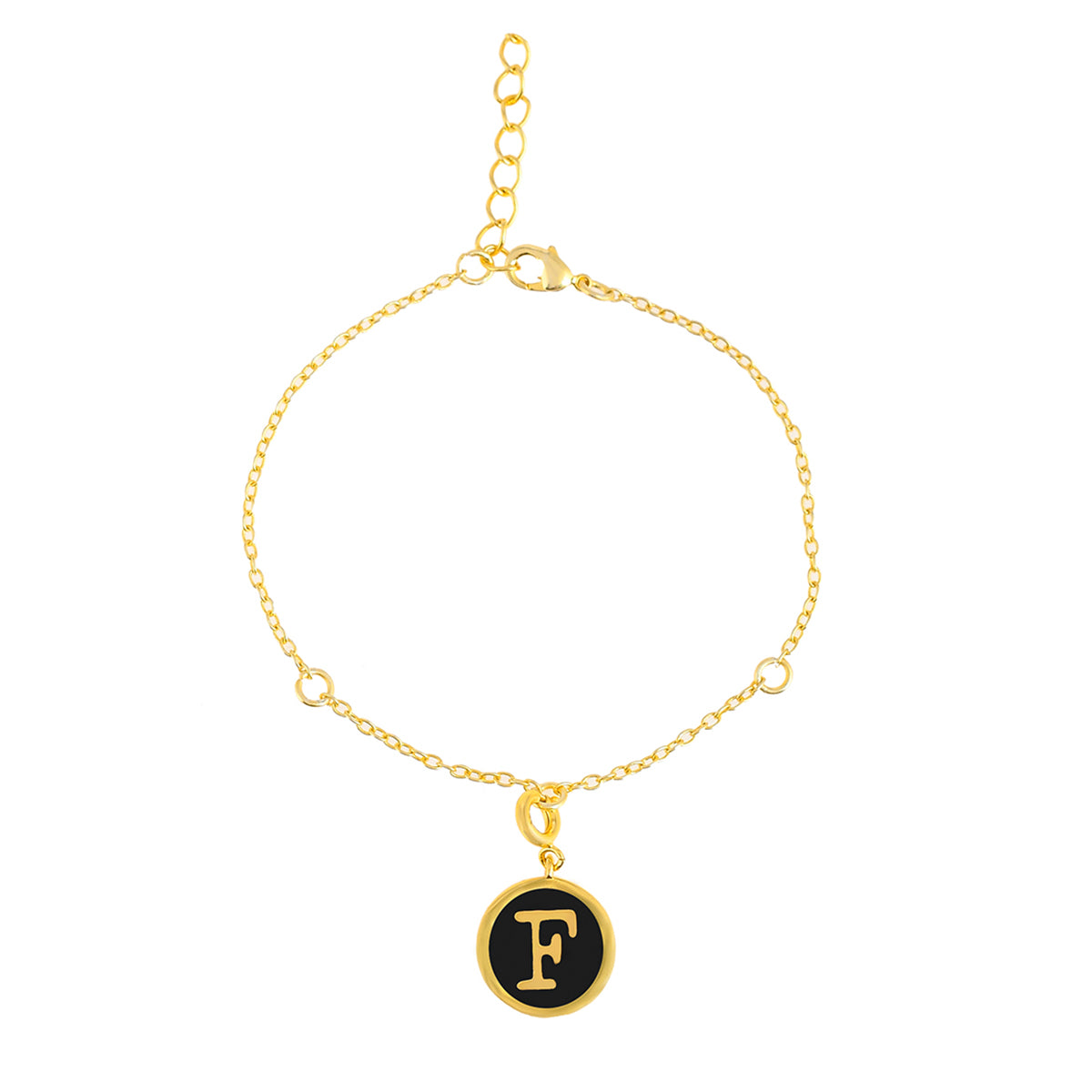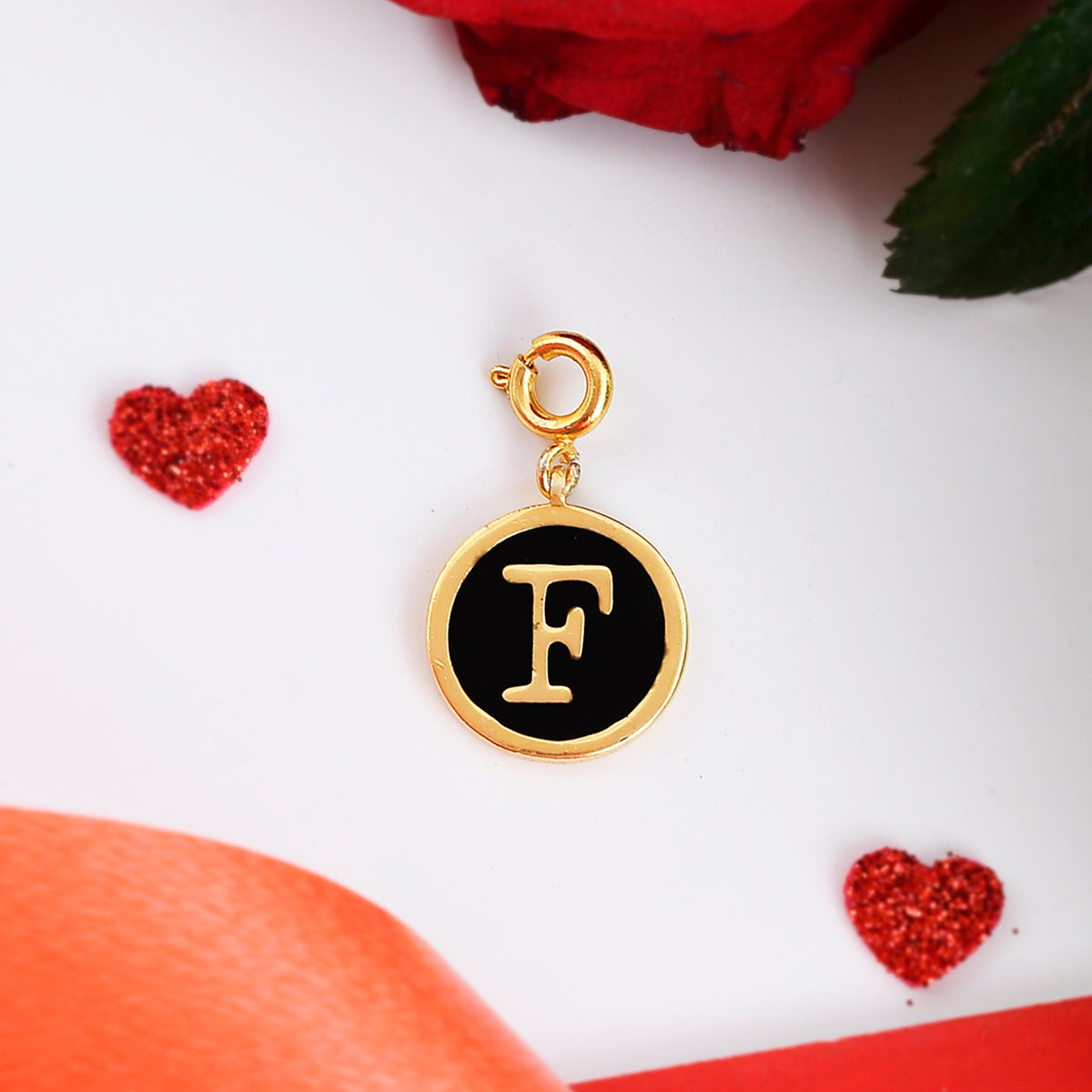 Alphabet F gold plated black enamel charm fashioned out of brass. The perfect V Day gift for a loved one. Add to watches or bracelet for more allure.