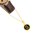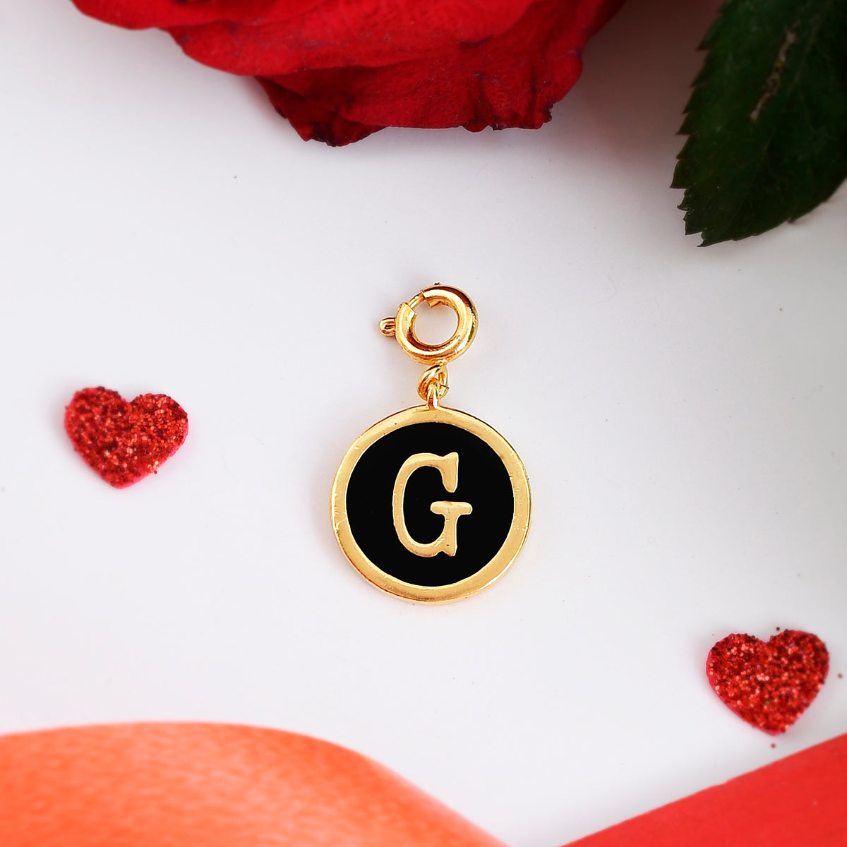Black enamel alphabet G charm for watches and bracelet. Made from brass and gold plated. The perfect V Day gift for a loved one.