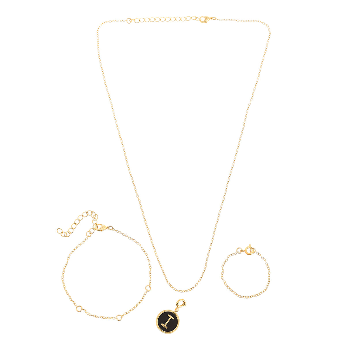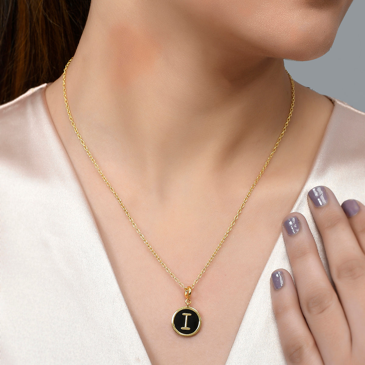 Black enamel alphabet I charm for watches and bracelet. Made from brass and gold plated. The perfect V Day gift for a loved one.