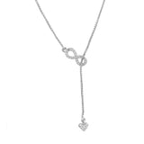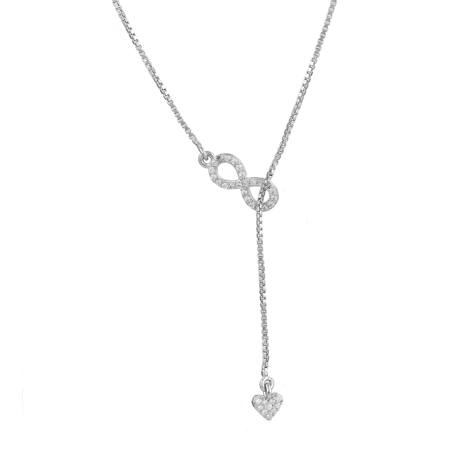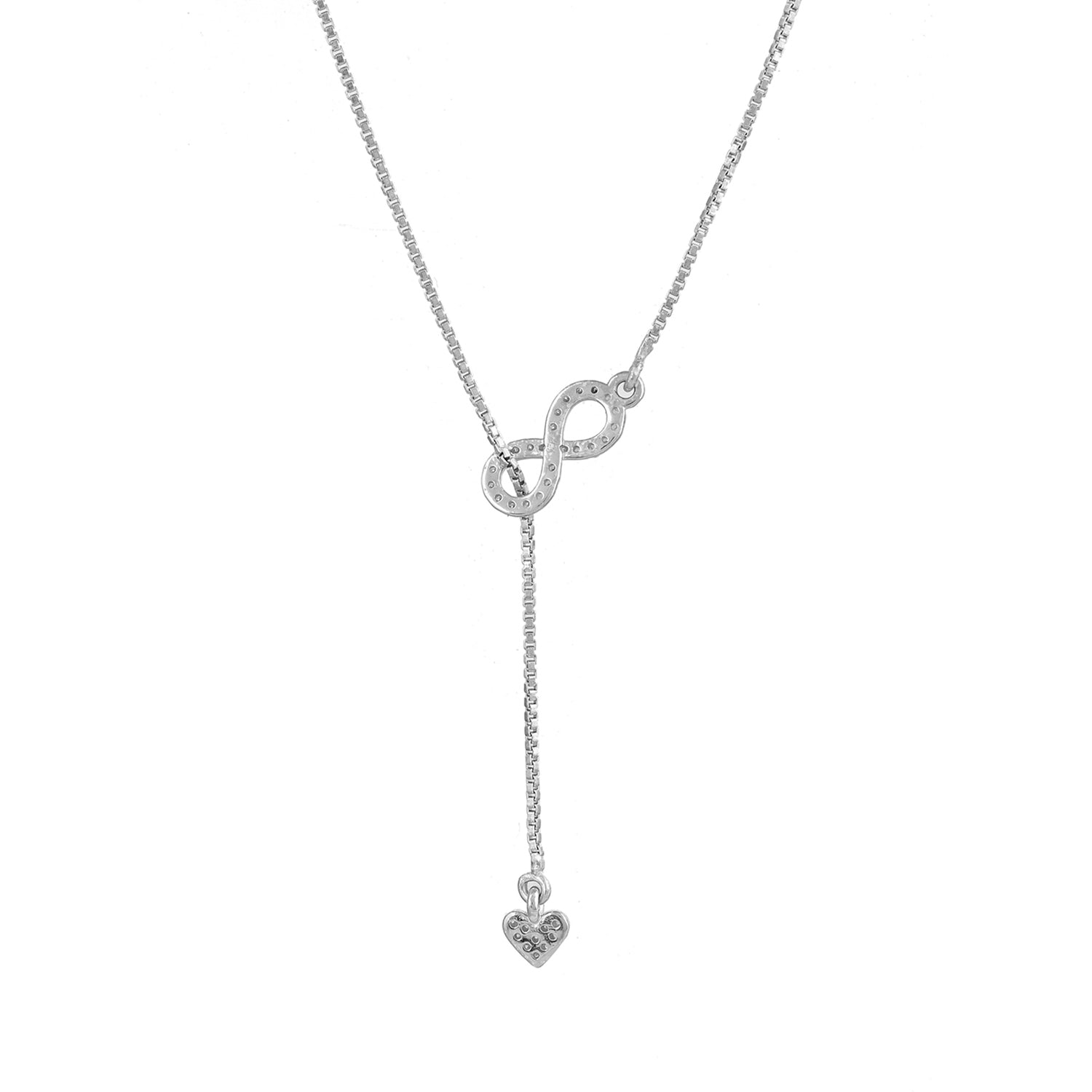 Celebrate eternal love with the Endless Love Infinity Sterling Silver Y Necklace. This exquisite piece from the Endless Love Collection is crafted from high-quality sterling silver and plated with white rhodium for a lustrous finish. The necklace features a delicate infinity symbol adorned with sparkling stones, symbolizing endless love, and a charming heart pendant that dangles gracefully. Perfect for any occasion, this versatile necklace can be styled with both casual and formal outfits, making it an ideal accessory for parties, weddings, festive celebrations, and more. Its elegant design and timeless appeal make it a thoughtful gift for women, whether for Endless Love, Diwali, Raksha Bandhan, Christmas, New Year, or any special occasion. Surprise your loved one's be it your girlfriend, wife, mother, or sister's with this stunning piece that speaks volumes of your affection.