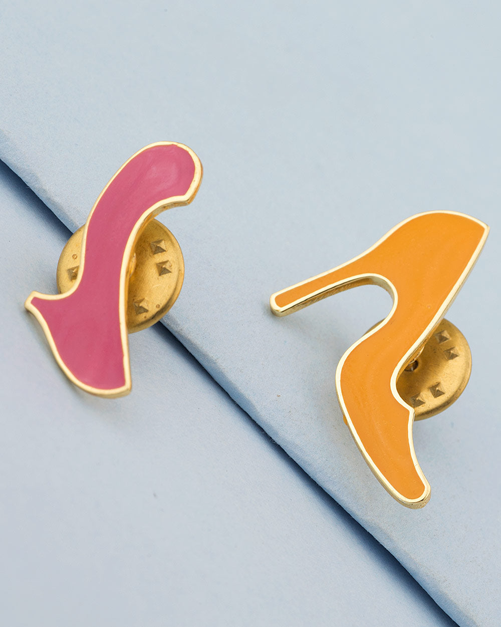 Enhance the appeal of any solid attire with this pair of colorful brooches from Voylla. Excellently crafted, this pair features stilettos design with colorful enamel work. Team this pair with your party outfits for a gorgeous look. This piece of jewelry comes with the Voylla assurance of quality and durability.