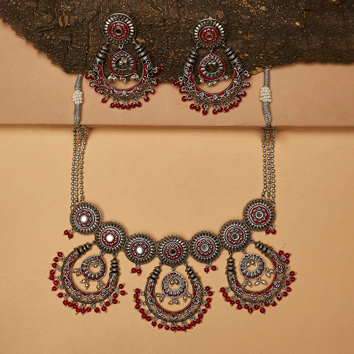 Madhubani Vihang Vibes Oxidised Enamel Necklace Set