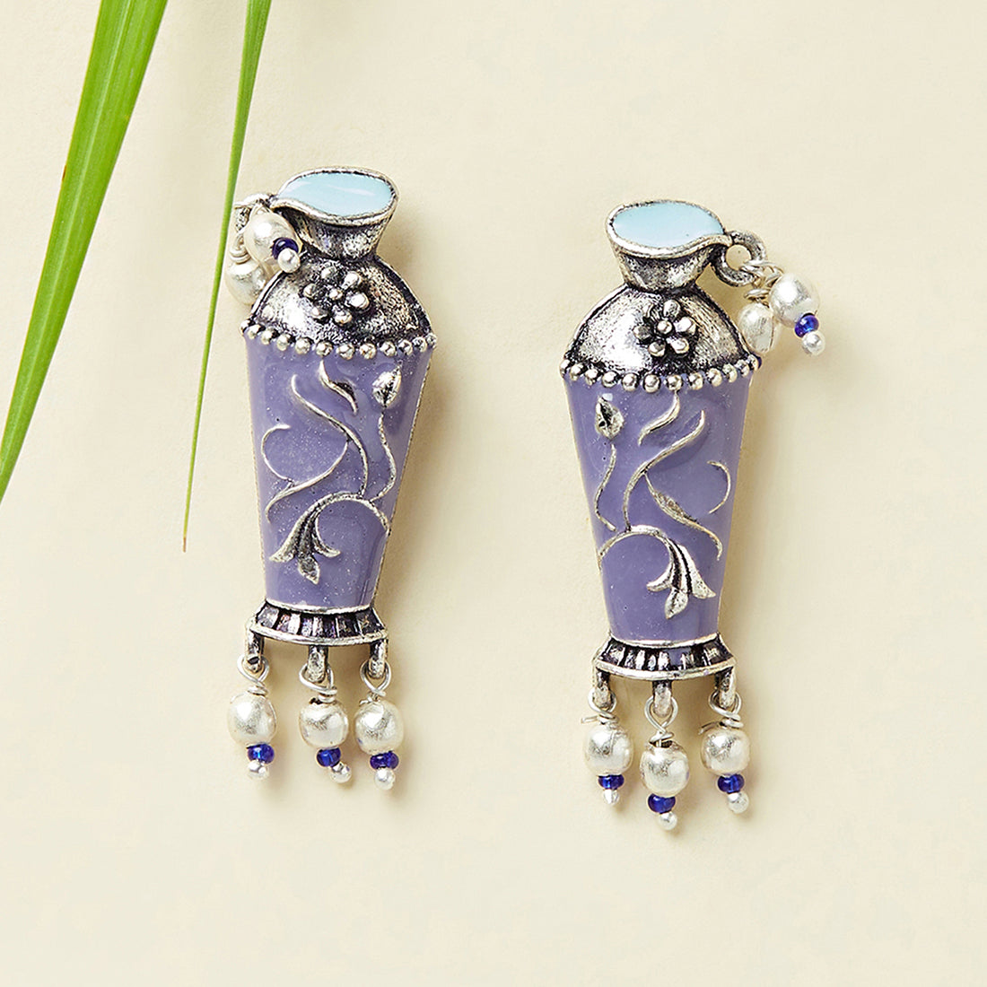 Arabian Nights Vintage Style Enamelled Oxidised Plated Brass Earrings