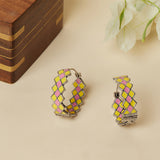 Mosaic coloured earrings, inspired by the morrocan style. Made from brass and plated in gold, this is a definitive must-have. Pair with an ethnic kurta for your next evening outing.
