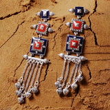 Rangoli inspired tassels drop earrings. Made from brass and oxidised silver plated. Good for formal wear.