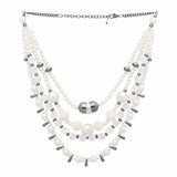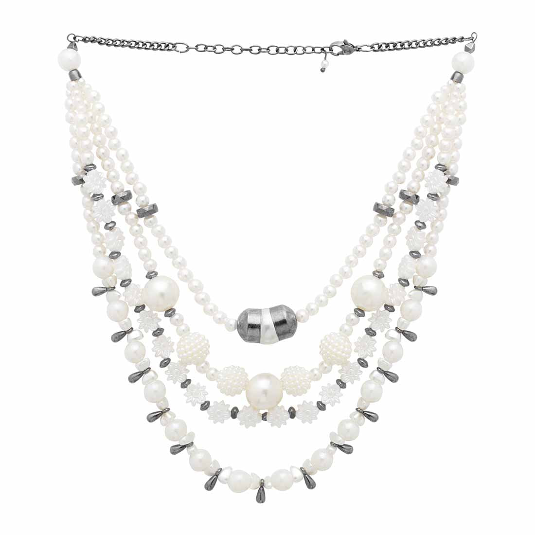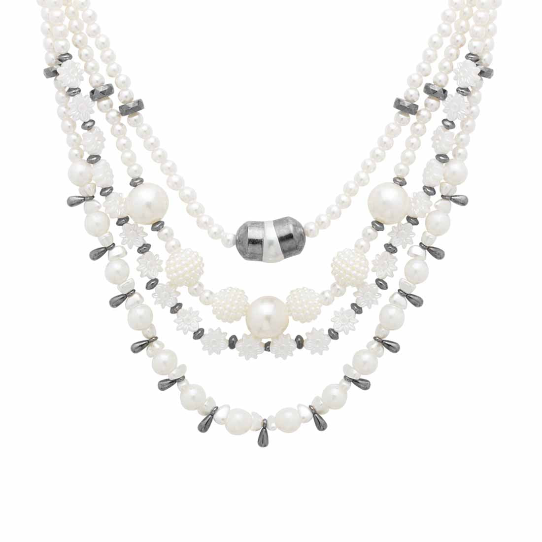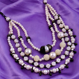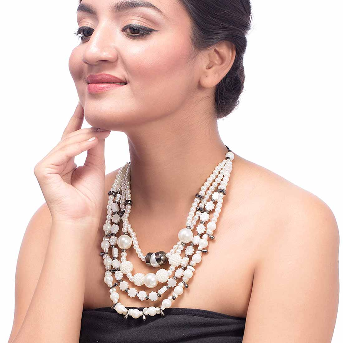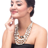 Inspired from vintage jewelry pieces, this layered necklace is a true classic. Immaculate, unblemished pearls have been used to embellish this lovely piece, which has been crafted from brass. Black rhodium plating adds to its timeless charm.