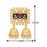 Gold Opulence Rangrez Pearl Chaandbali Earrings – a breathtaking fusion of heritage and modern elegance, designed to captivate with its intricate craftsmanship and regal charm. These statement earrings for women are crafted from high-quality brass, lavishly plated in gold, ensuring...