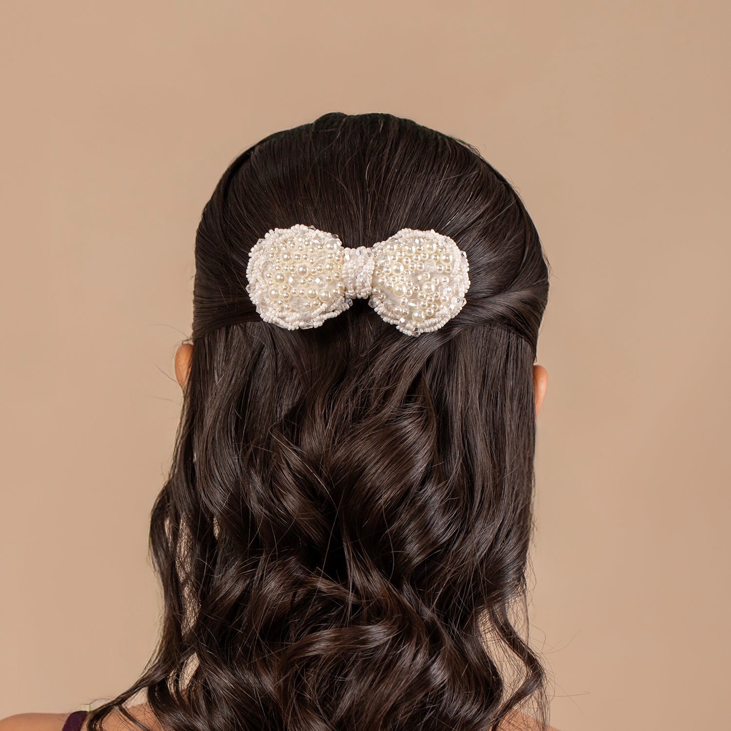 Elevate your hairstyle with the classic elegance of the Korean Bling Timeless Pearl Bow Hair Clip. From the much-loved Korean Bling collection, this Korean style hairclip blends timeless charm with modern fashion. Designed in a delicate bow shape, this bow hairclip is adorned with an array of luminous pearls and dainty beads, making it a standout piece of Korean statement hair accessories. Perfect for both everyday styling and special occasions, this trendy fashion hairclip can instantly transform your look. The soft pearl embellishments give it a refined touch, making it suitable as an everyday wear hairclip for office or casual outings, as well as a glamorous accessory for evening wear. Lightweight yet durable, it secures your hair comfortably while adding a polished finish to buns, ponytails, or half-up hairstyles. It also makes for a thoughtful gift for her, whether you’re searching for a cute hairclip, an elegant gift for girlfriend, or timeless jewellery gifts for women, this hairclip gift is a beautiful choice for birthdays, anniversaries, or festive celebrations.