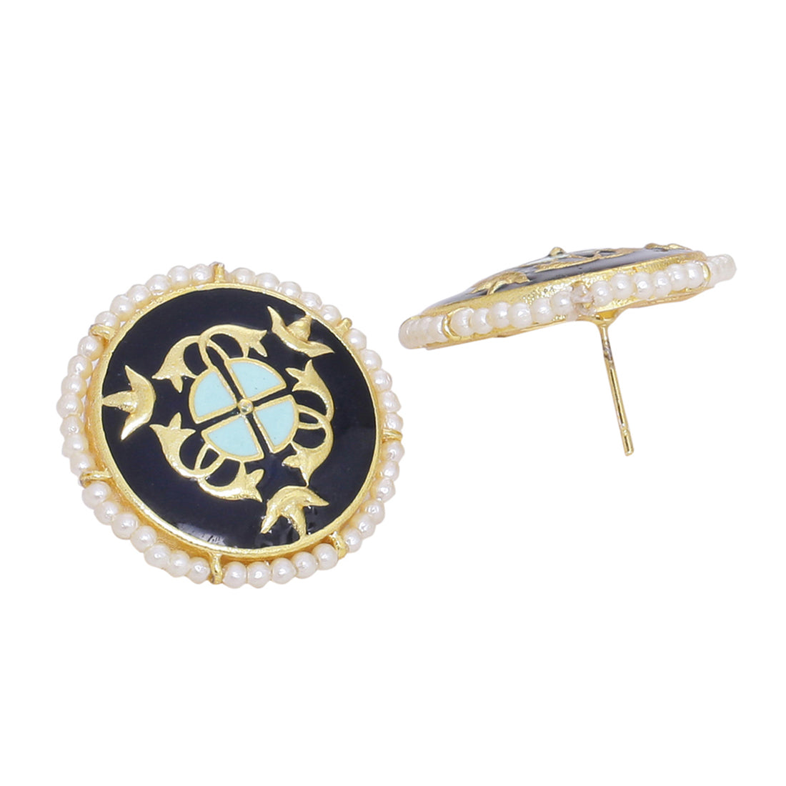 Make a statement with the Tahira Royal Black Studs. Perfect enamelled detailing enhanced with pearl beads. This piece of jewelry comes with the Voylla assurance of quality and durability.