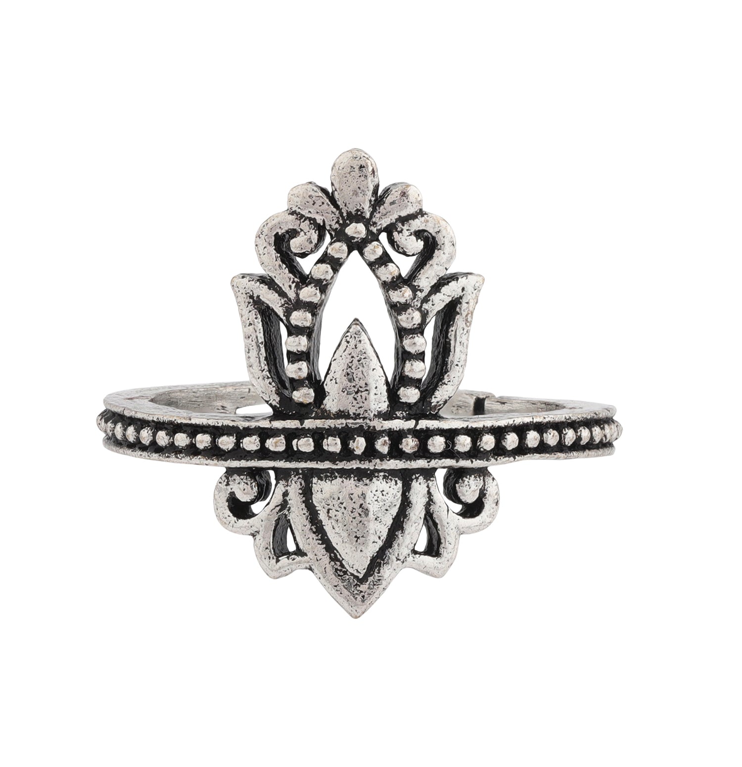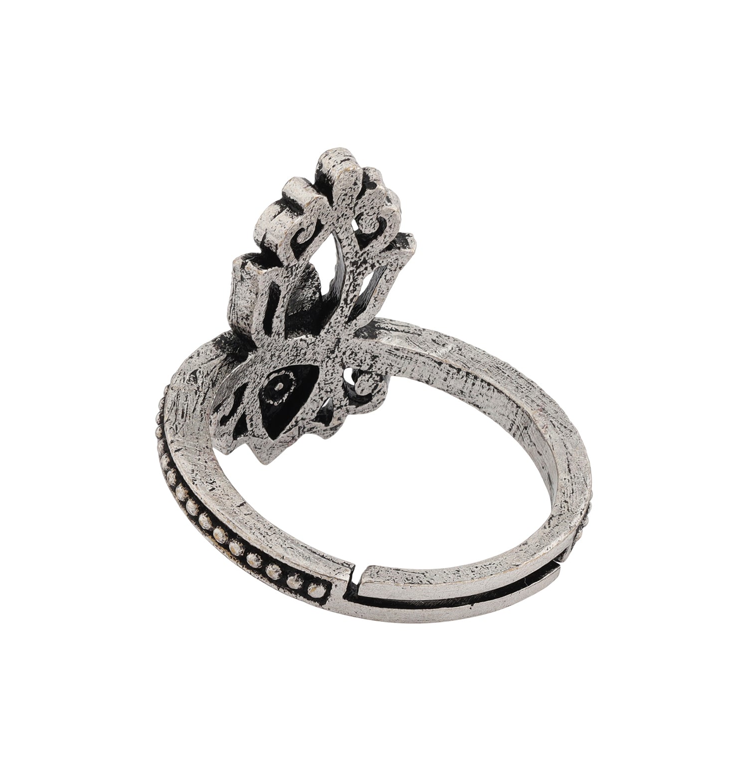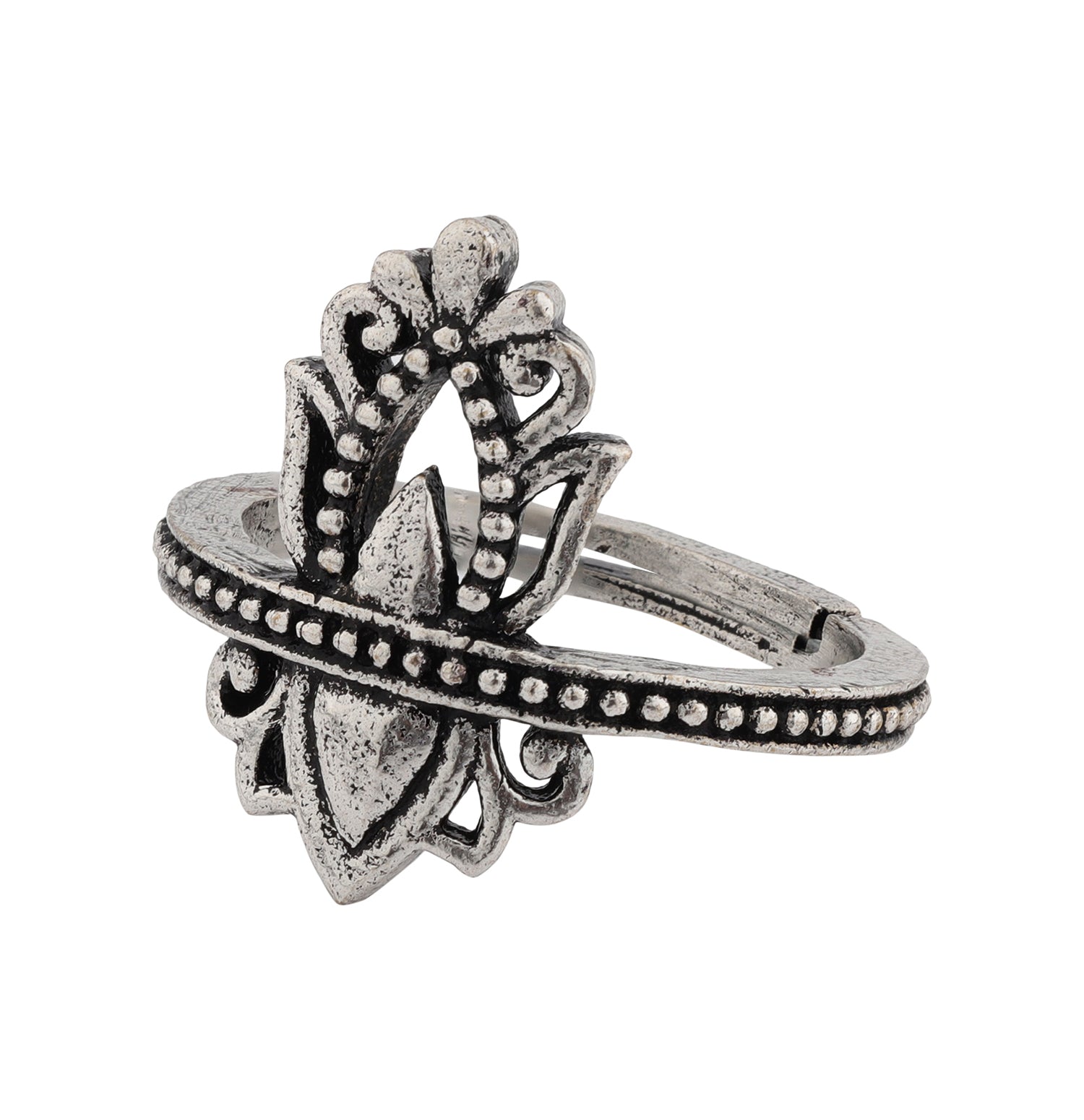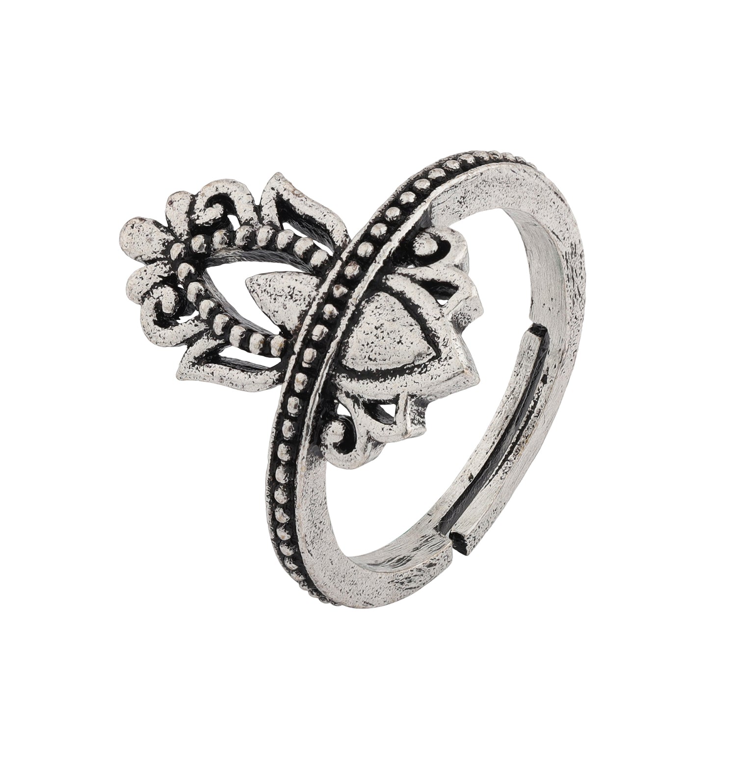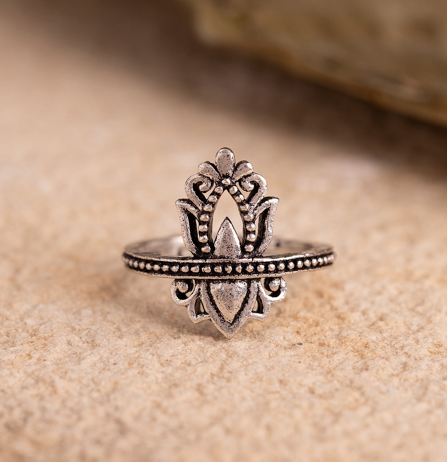 Boho Tribe Lotus Plume Oxidised Ring For Women