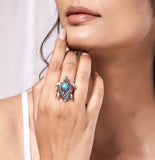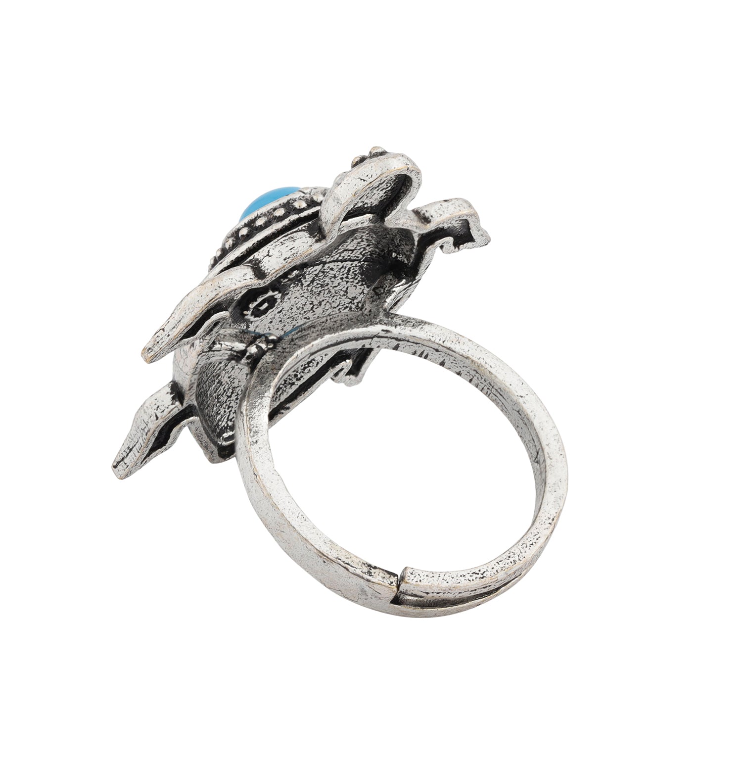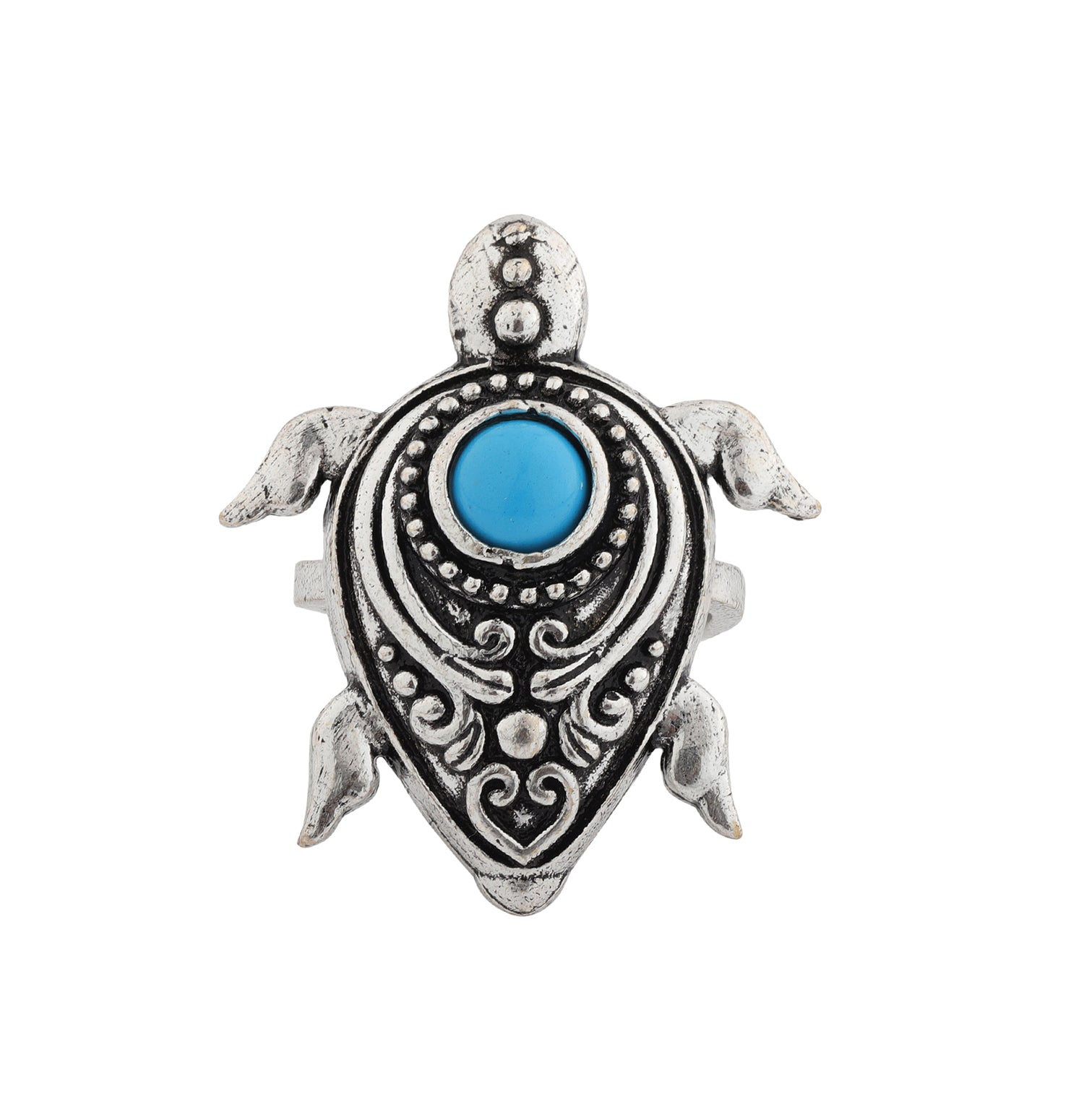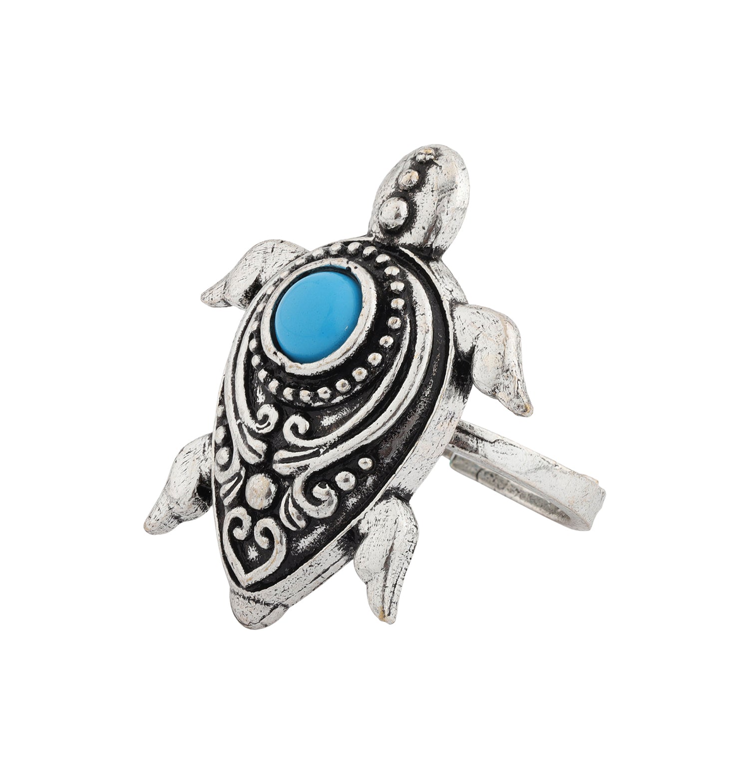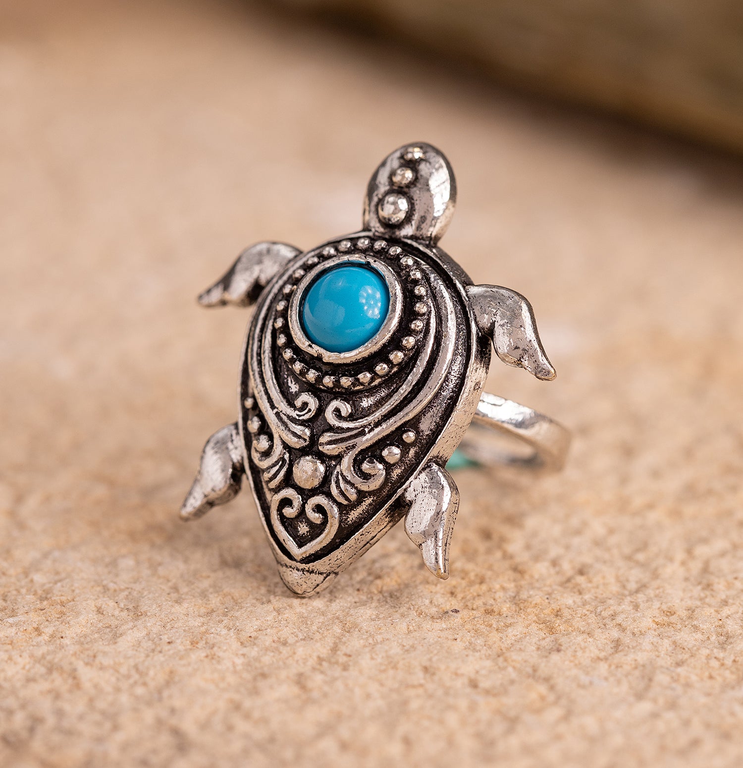 Boho Tribe Turtle Turquoise Oxidised Ring