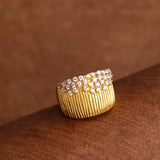 Lightly embellished designer inspired brass ring with black rhodium plating. Pair with party attire.