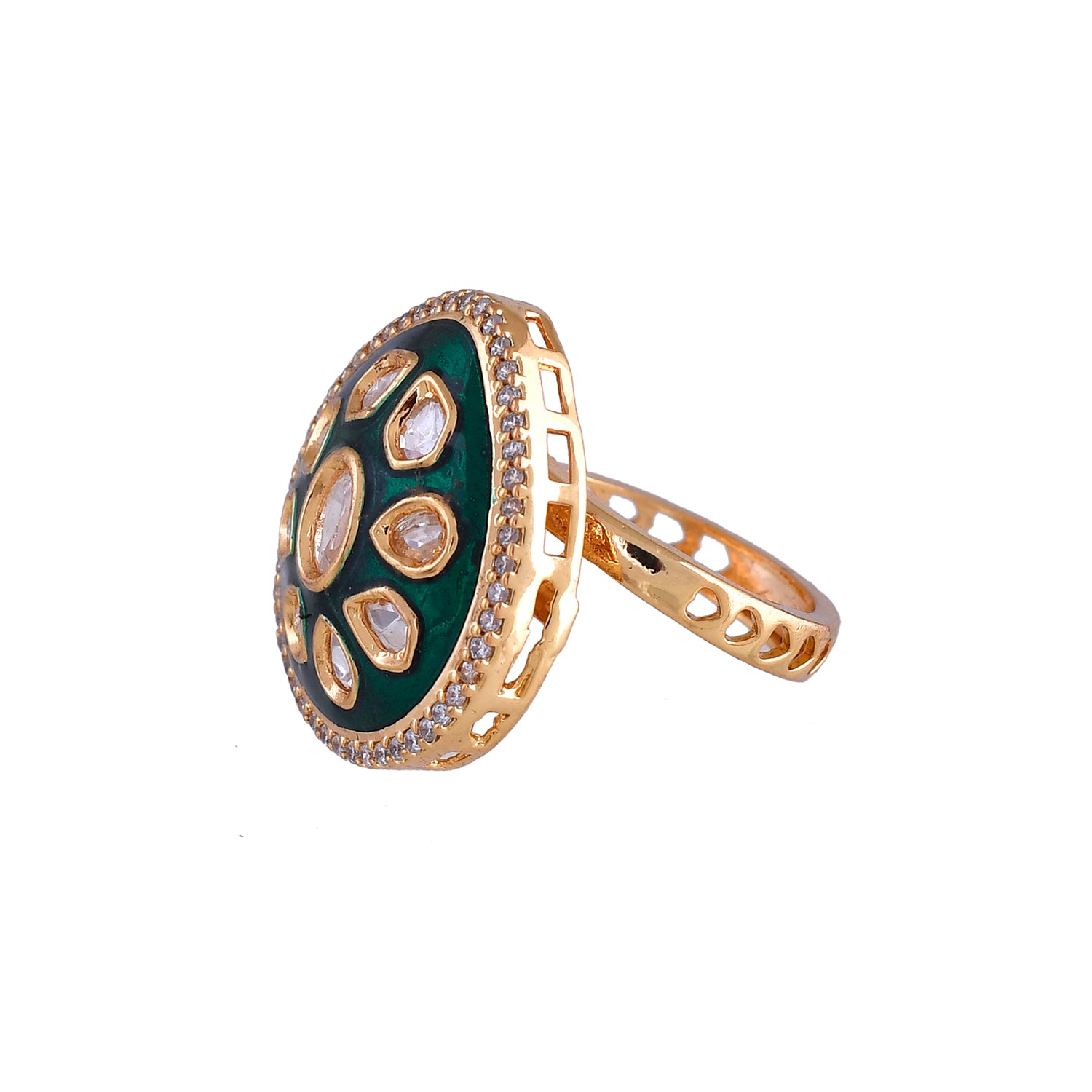 Kundan Elegance Shahi Meena Emerald Ring