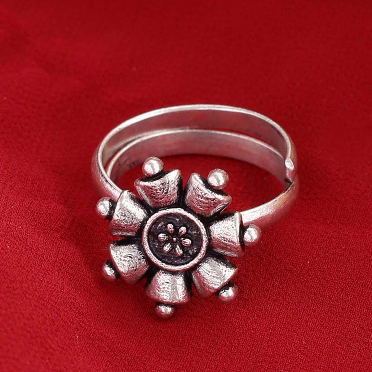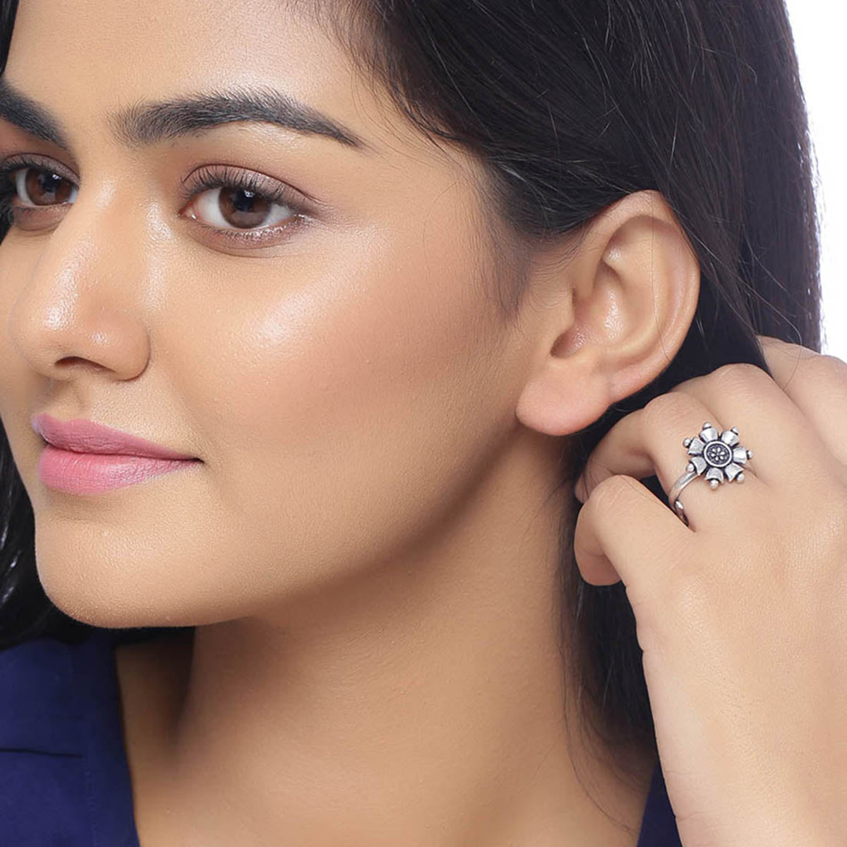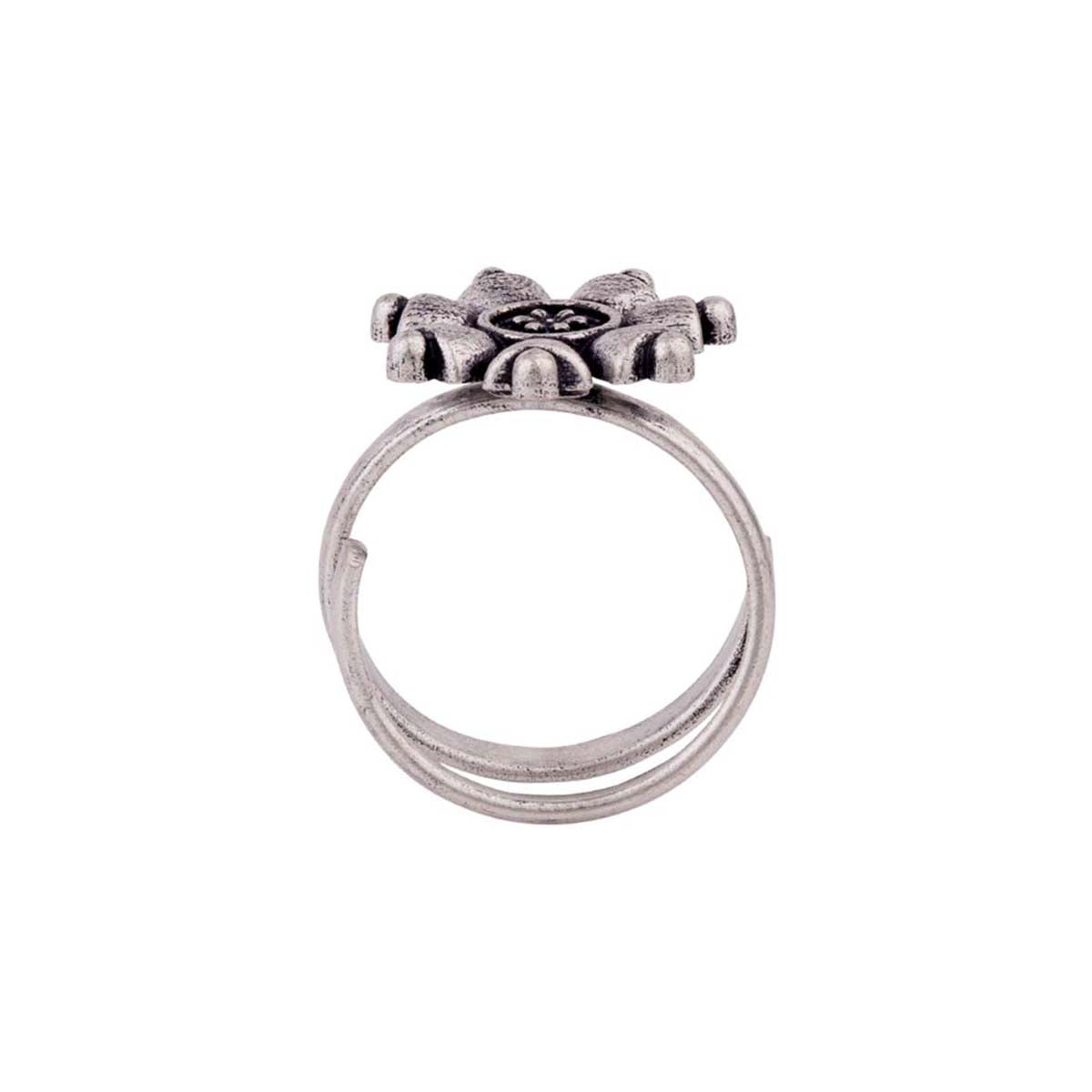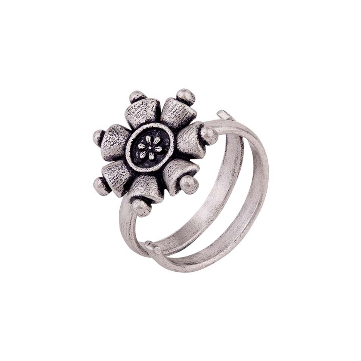 Floral motif statement ring made from brass. Oxidised silver plated, lightweight and versatile.