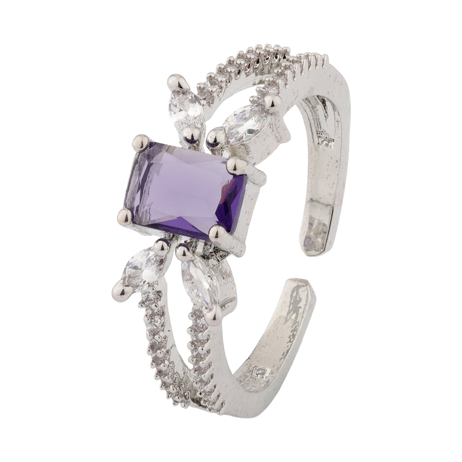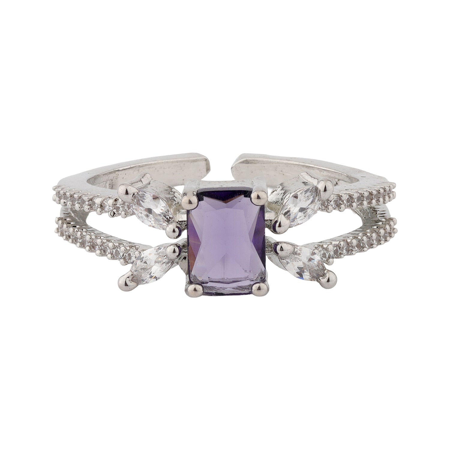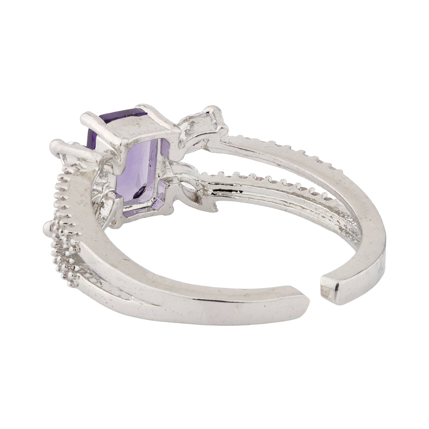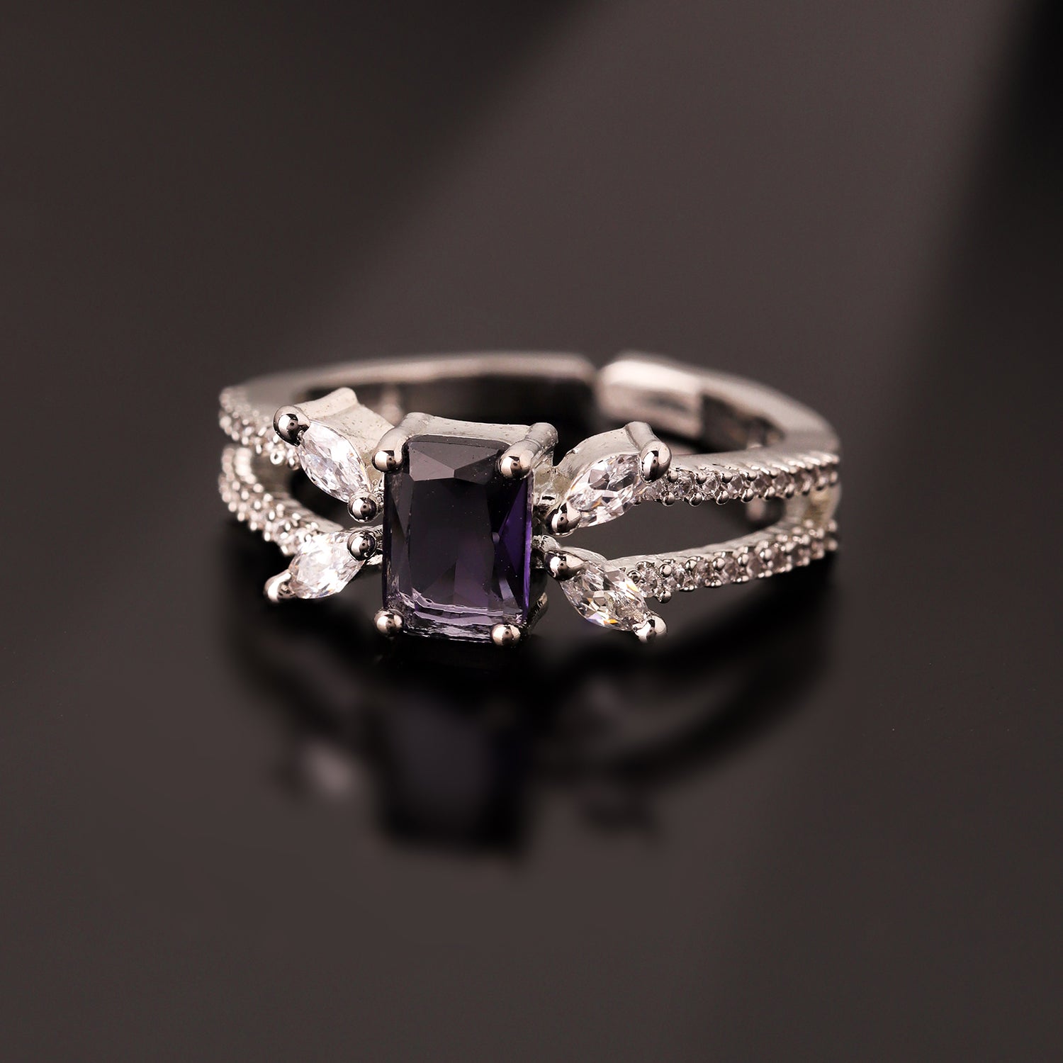 Unveil your inner radiance with the Sparkling Elegance Collection, featuring the enchanting Midnight Glow Statement Ring for women, a symbol of class, poise, and timeless sophistication. Crafted from premium brass and finished with a luxurious white rhodium plating, this ring beautifully merges contemporary artistry with classic charm. The design highlights a stunning deep violet rectangular CZ stone, flanked by marquise-cut white CZ accents that mimic the delicate shape of petals, adding a soft and feminine touch. Perfect for women who adore understated glamour, this designer Ring embodies refined style and elegance. Whether you’re attending a wedding, festive event, or glamorous cocktail evening, the Midnight Glow Statement Ring will effortlessly enhance your look. Its sophisticated contrast of deep hues and radiant sparkle makes it a standout choice and an unforgettable gift for wife, gift for girlfriend, or gift for women who appreciate true beauty.