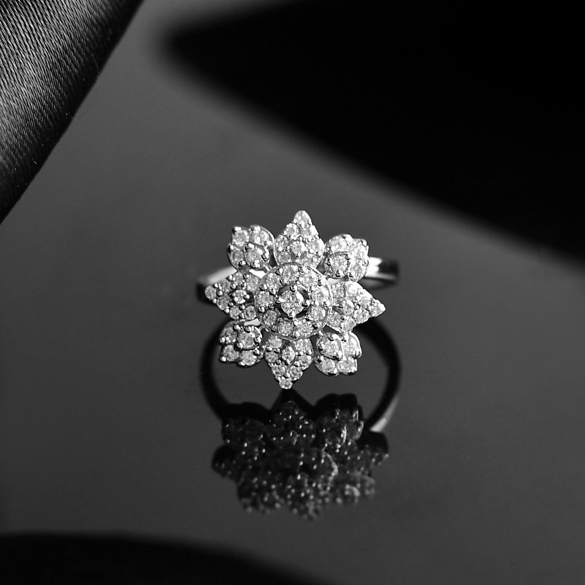 Step into the spotlight with the Halo Essence Luster Floral Statement Ring—a radiant fusion of timeless charm and modern sophistication. Crafted in high-quality brass and finished in luminous white rhodium, this American diamond ring showcases a dazzling floral motif, where...