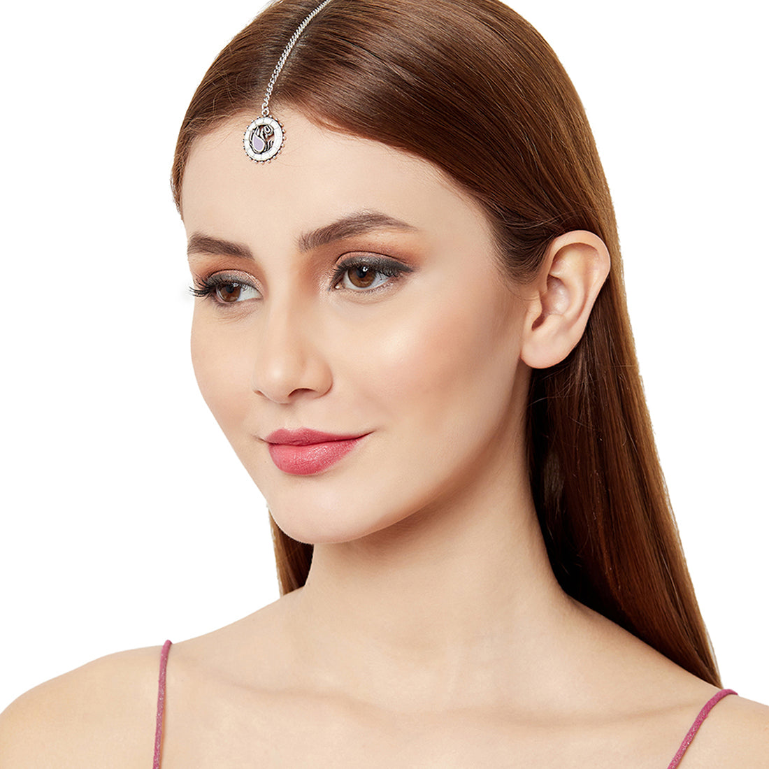 Shwet Kamal Peacock Motif Enamelled Silver Plated Maang Tika