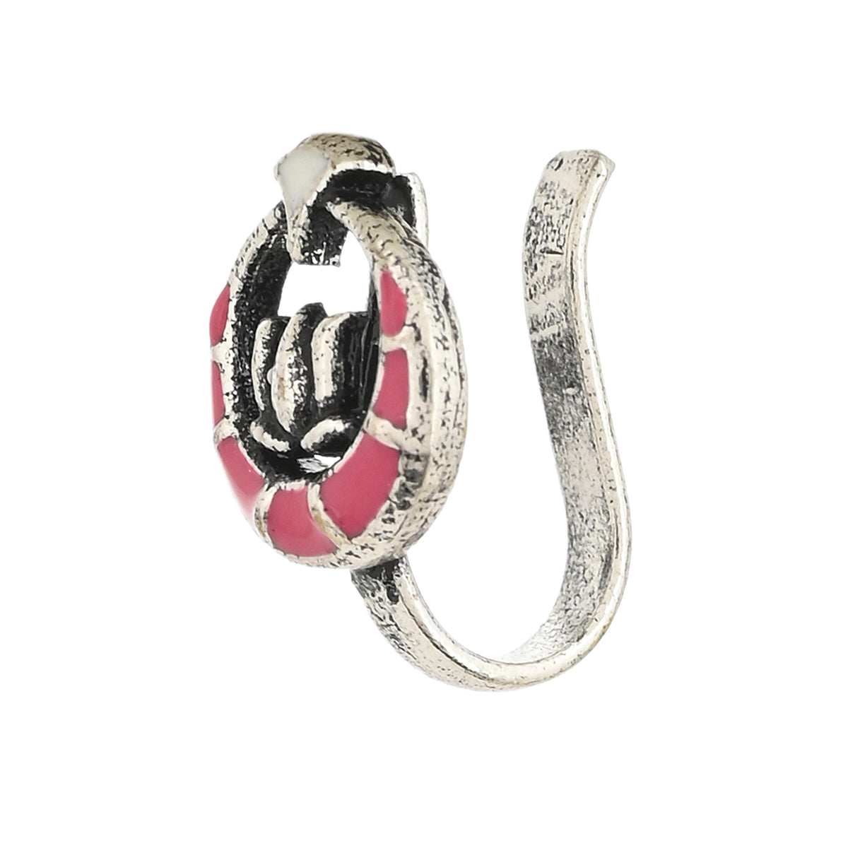 Shwet Kamal Pink-Silver Plated Nose Ring