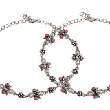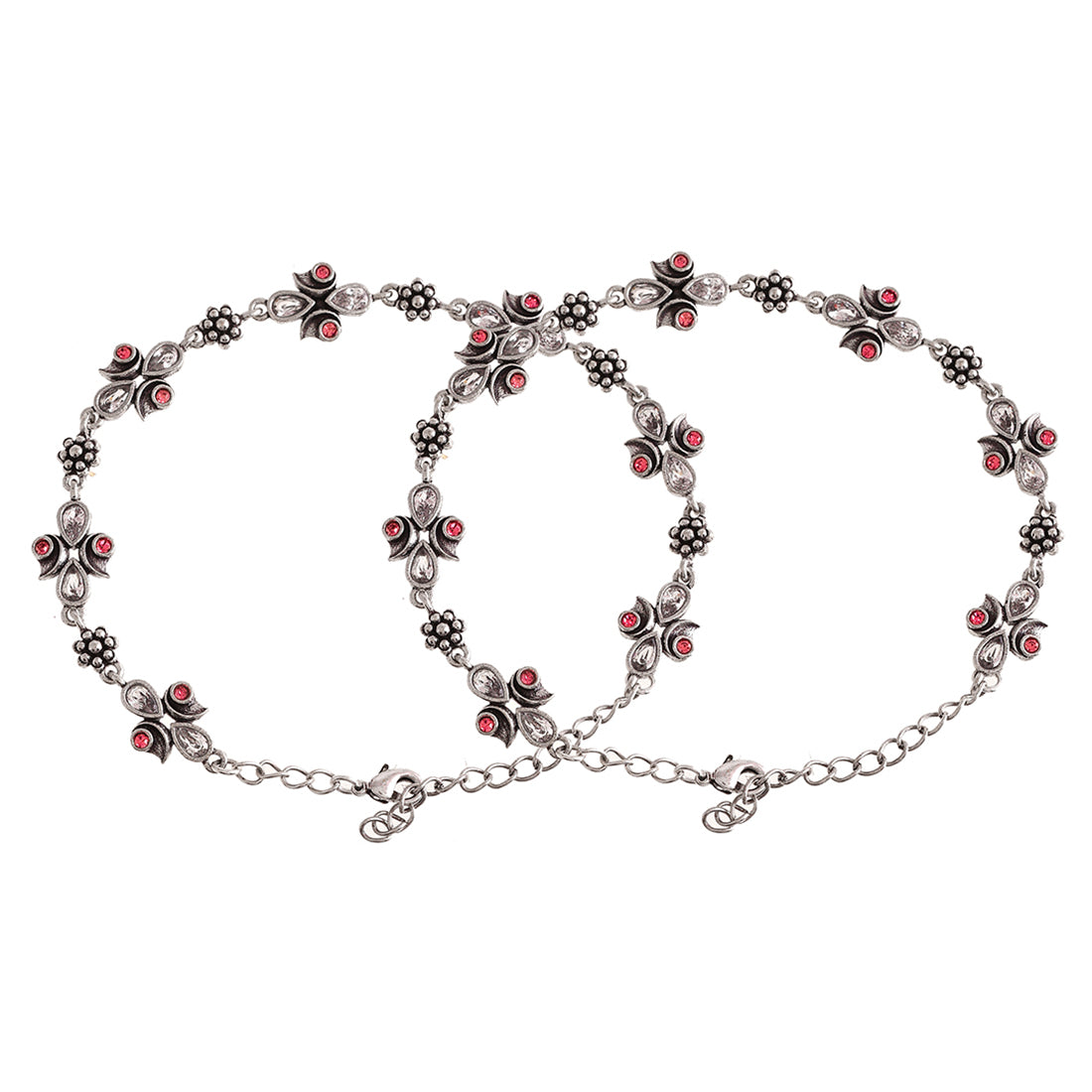Everyday wear anklets, made from brass and oxidised silver plated. Embellished with pink and white stones. Pair with just about any of your favourite outfits.
