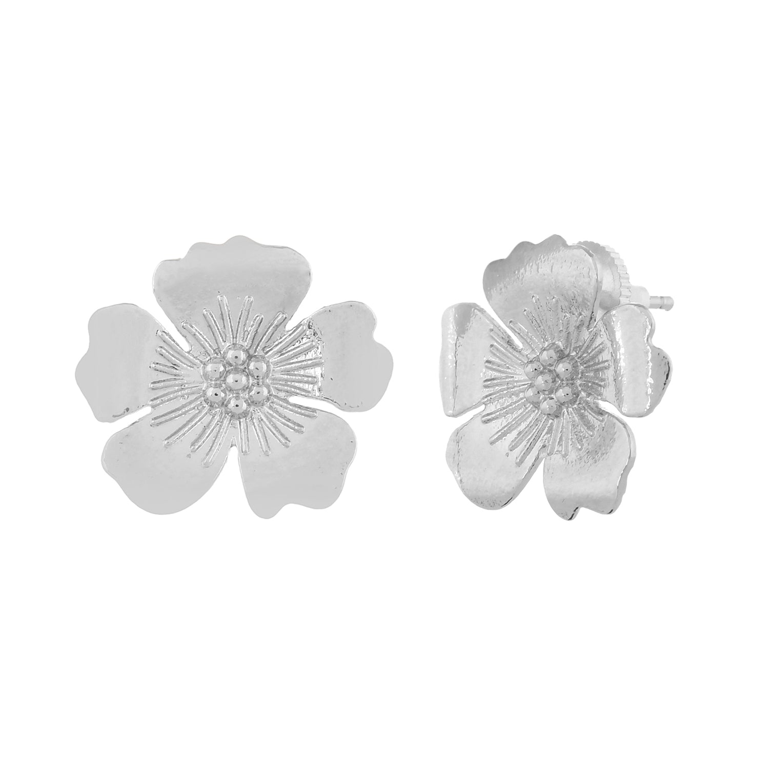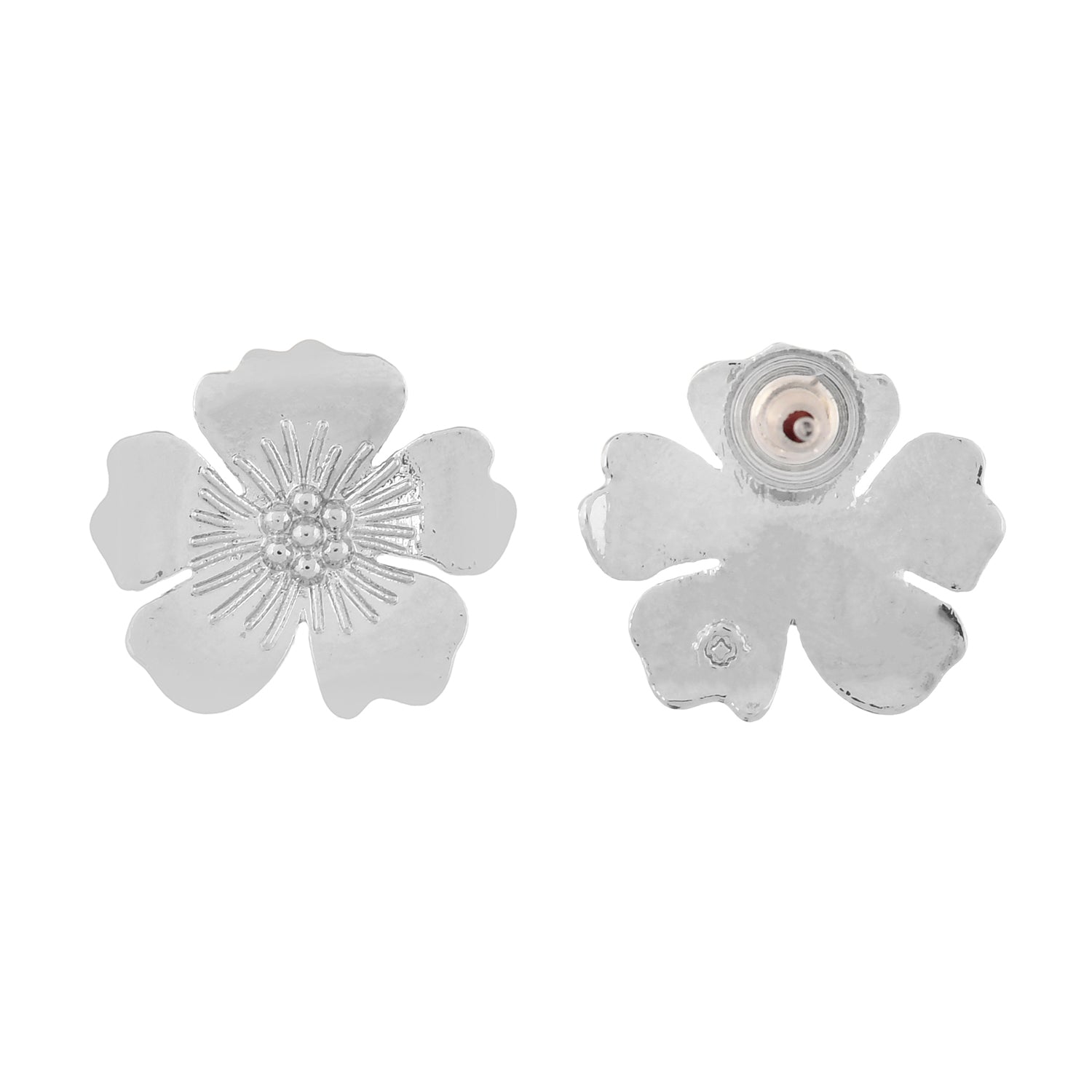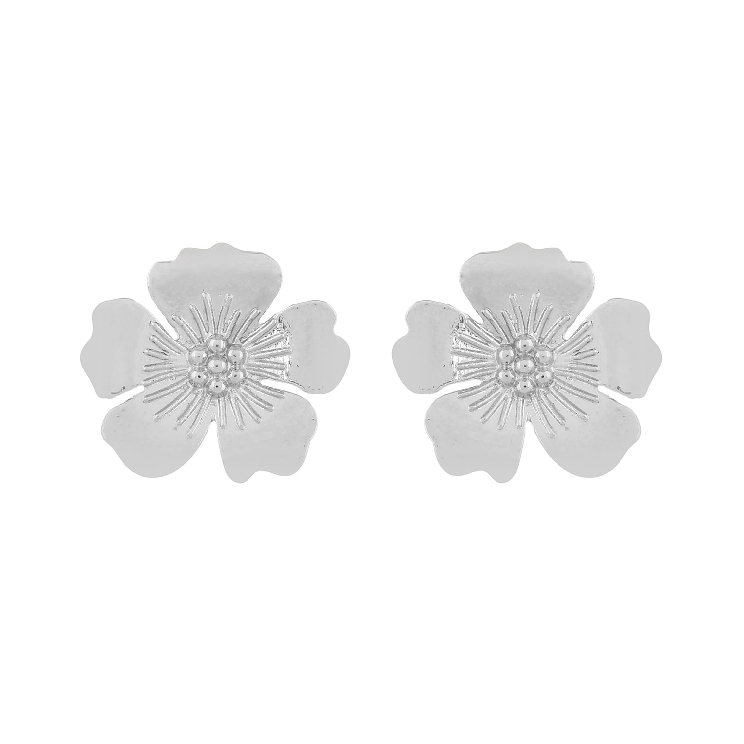 Inspired by the gorgeous and colourful beach flowers and the grace of the tropics, these stud earrings have been fashioned out of brass into a lovely floral motif design. White Rhodium plating adds to the charm of this lightweight, quirky and versatile pair.
