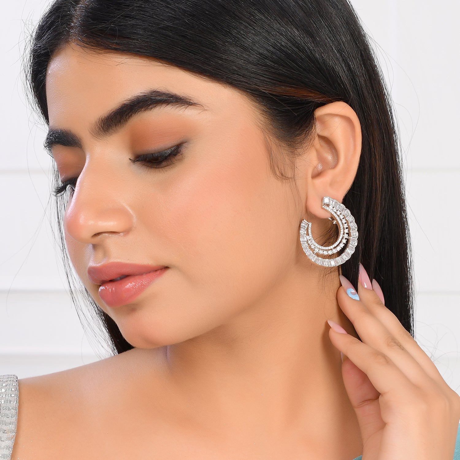 The design is inspired by the timeless beauty of paisley patterns, featuring intricate swirls that gracefully loop and twist, creating a mesmerizing visual flow. Each earring is embellished with delicate accents that sparkle with every turn, reflecting light and elegance.