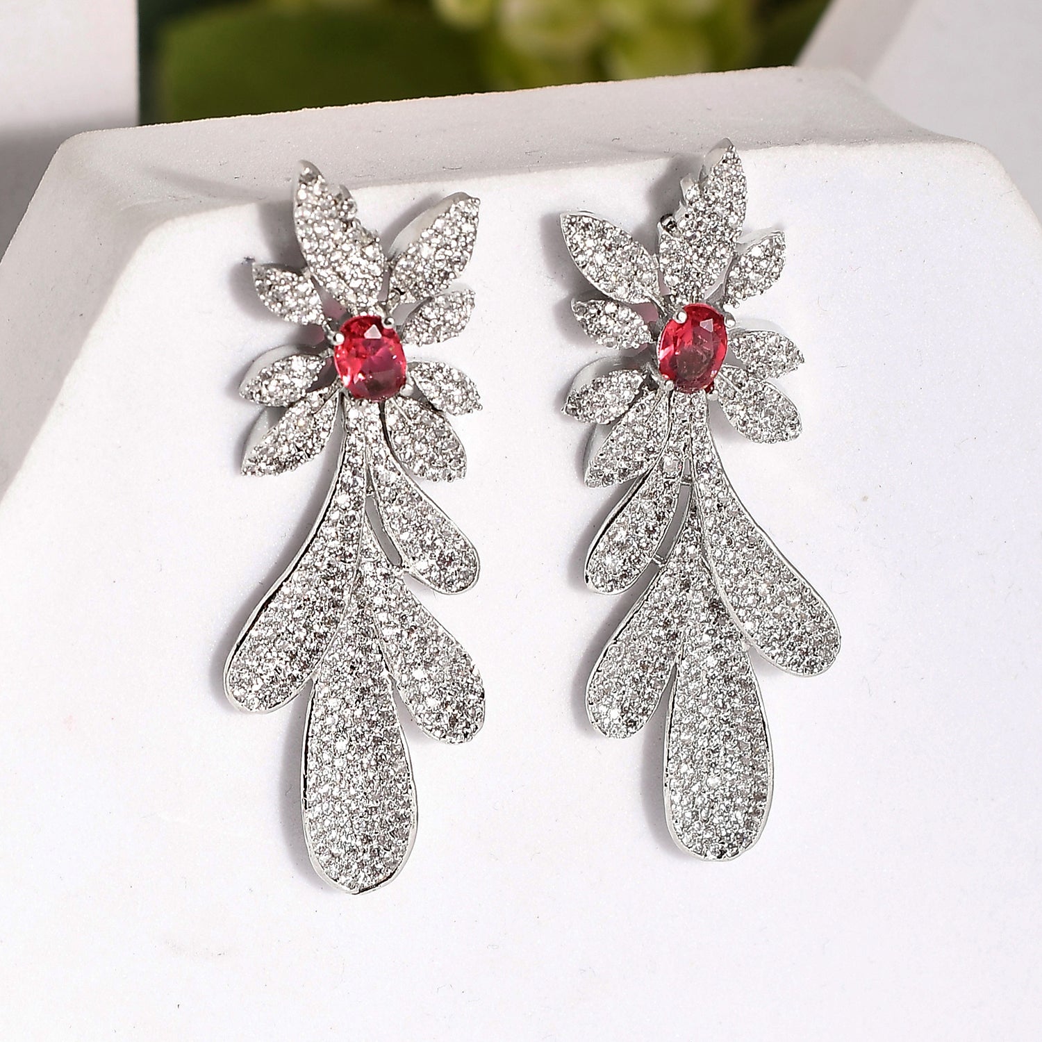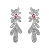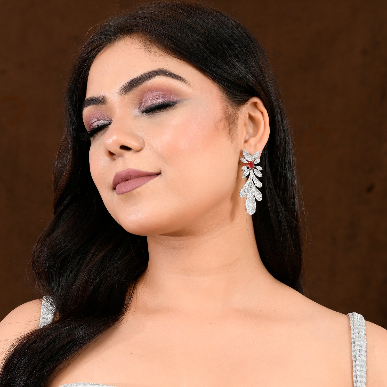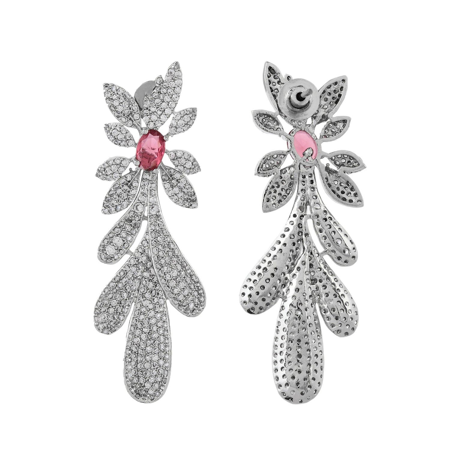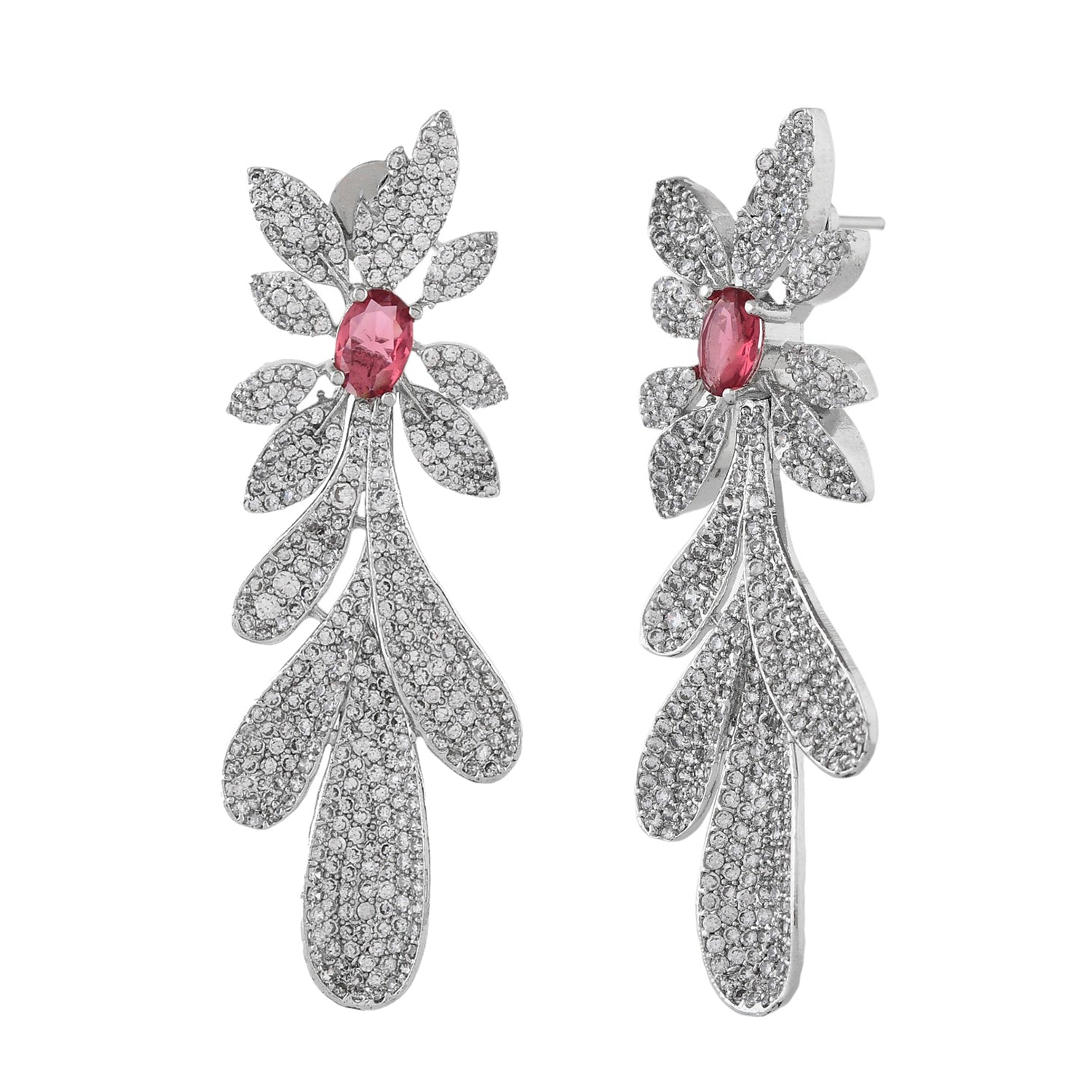 Discover the epitome of grace with these stunning long earrings, meticulously crafted from brass and adorned with a lustrous White Rhodium plating. Each earring features a captivating array of American Diamonds, exquisitely arranged to capture and reflect light with every...