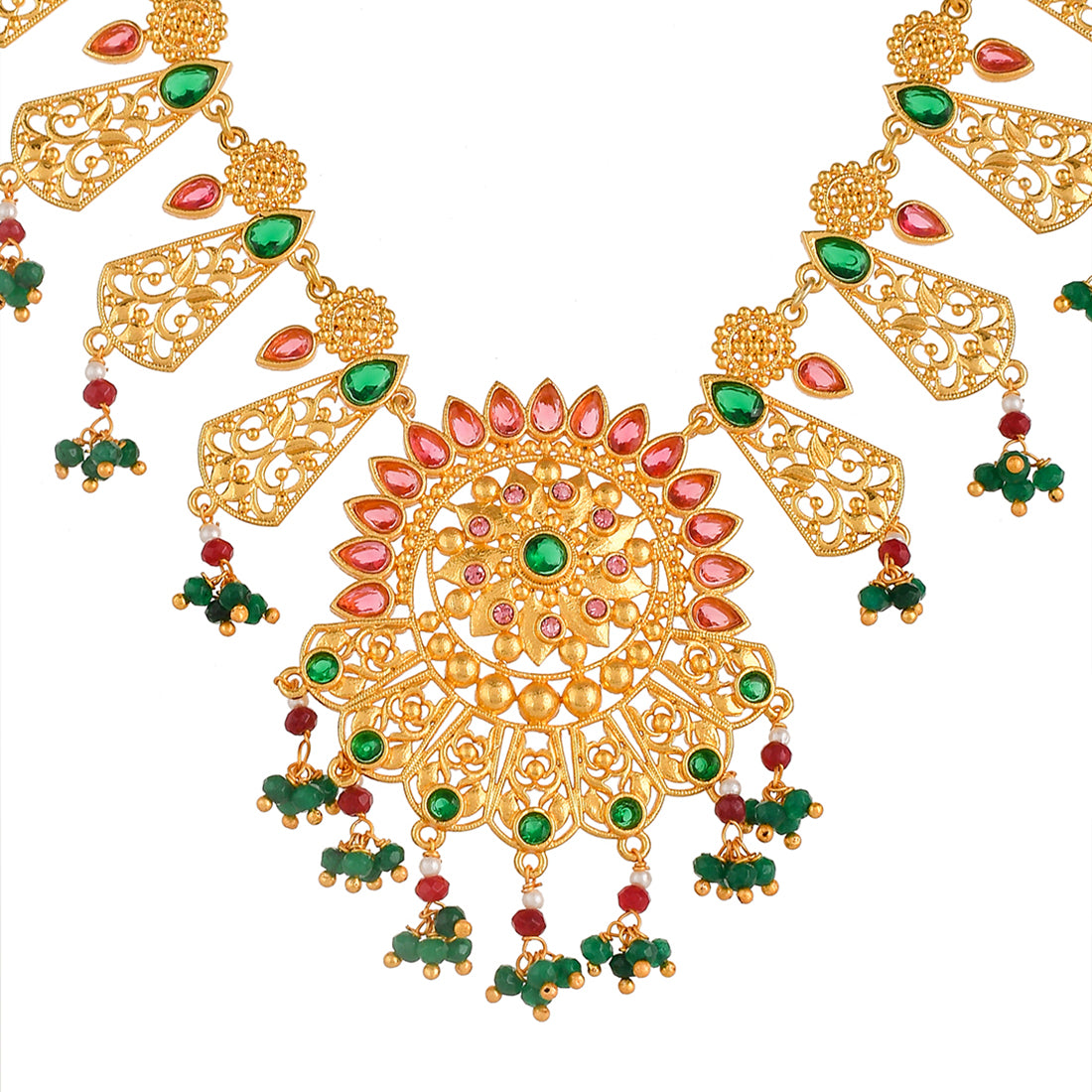 Abharan Red and Green Stones and Pearls Opulent Jewellery Set