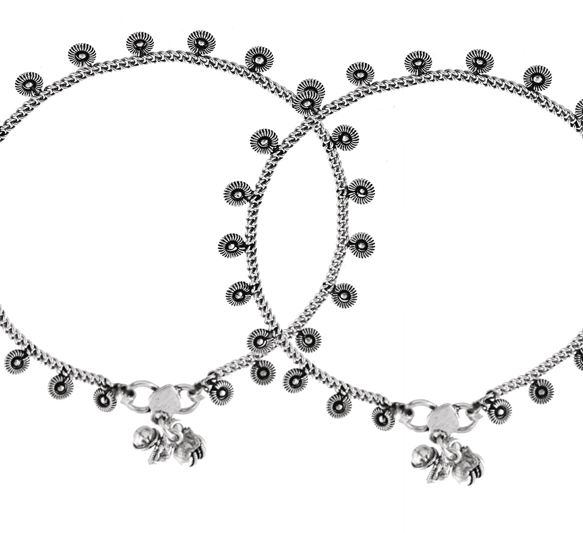 Antique Essentials Meera's Melody Oxidised Anklet Set