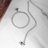 The Sitara Oxidised Anklet Set is an elegant piece of jewelry crafted from high-quality brass and plated with a timeless silver oxidised finish. This ethnic anklet set, adorned with intricate beadwork and ghungroo details, adds a touch of tradition to any outfit. Part of the Antique Essentials Collection, these payals are perfect for everyday wear, work wear, poojas, weddings, and festivals like Holi and Diwali. Whether paired with ethnic attire like sarees, lehengas, or salwar kameez, or contemporary outfits for a stylish fusion, these statement anklets are designed to enhance your look. Ideal as a gift for women, these anklets make a thoughtful present for occasions like Valentine's Day, Rakshabandhan, Christmas, New Year, and Diwali. Surprise your sister, girlfriend, wife, mother, or lover with this exquisite anklet set that embodies timeless beauty and grace.