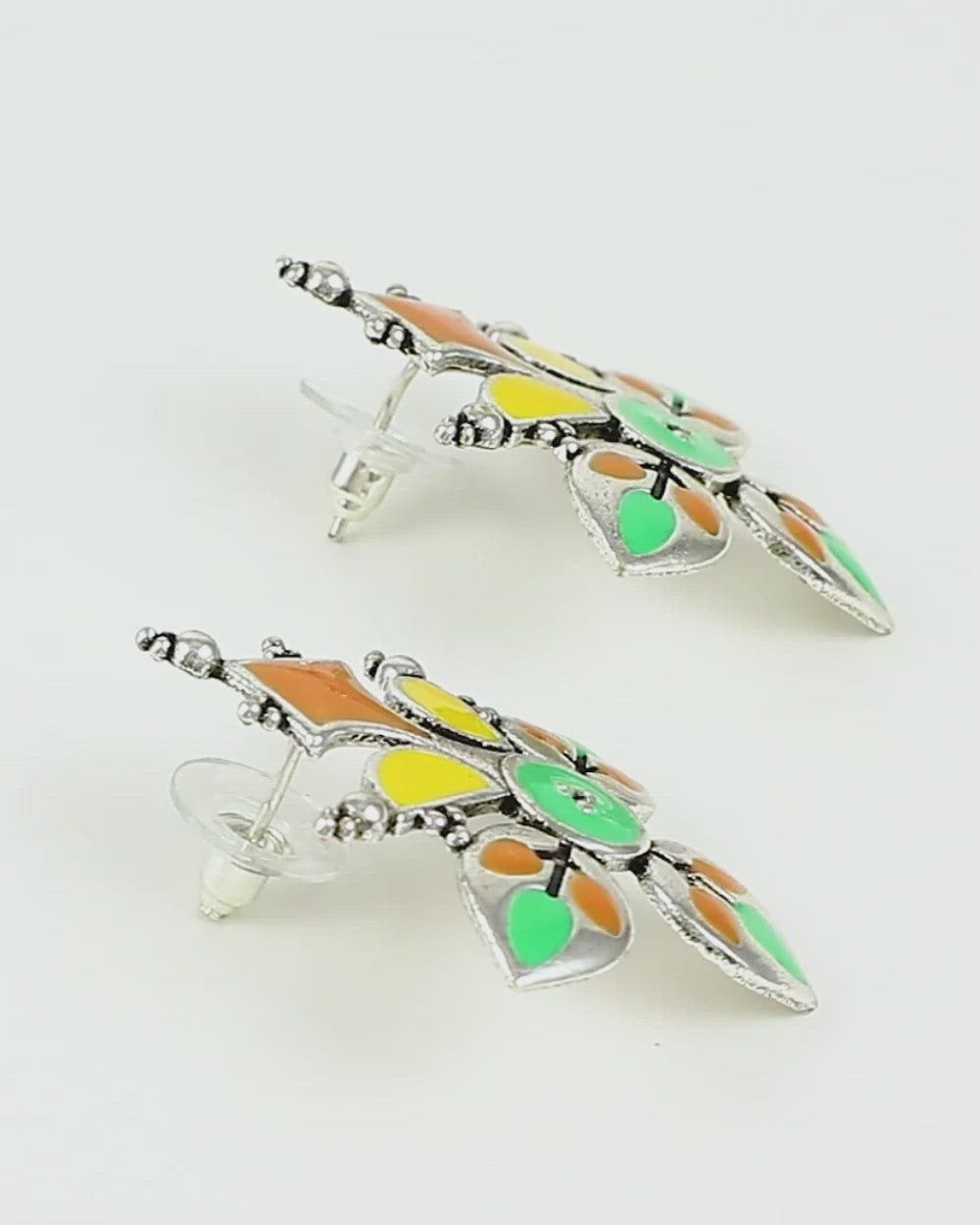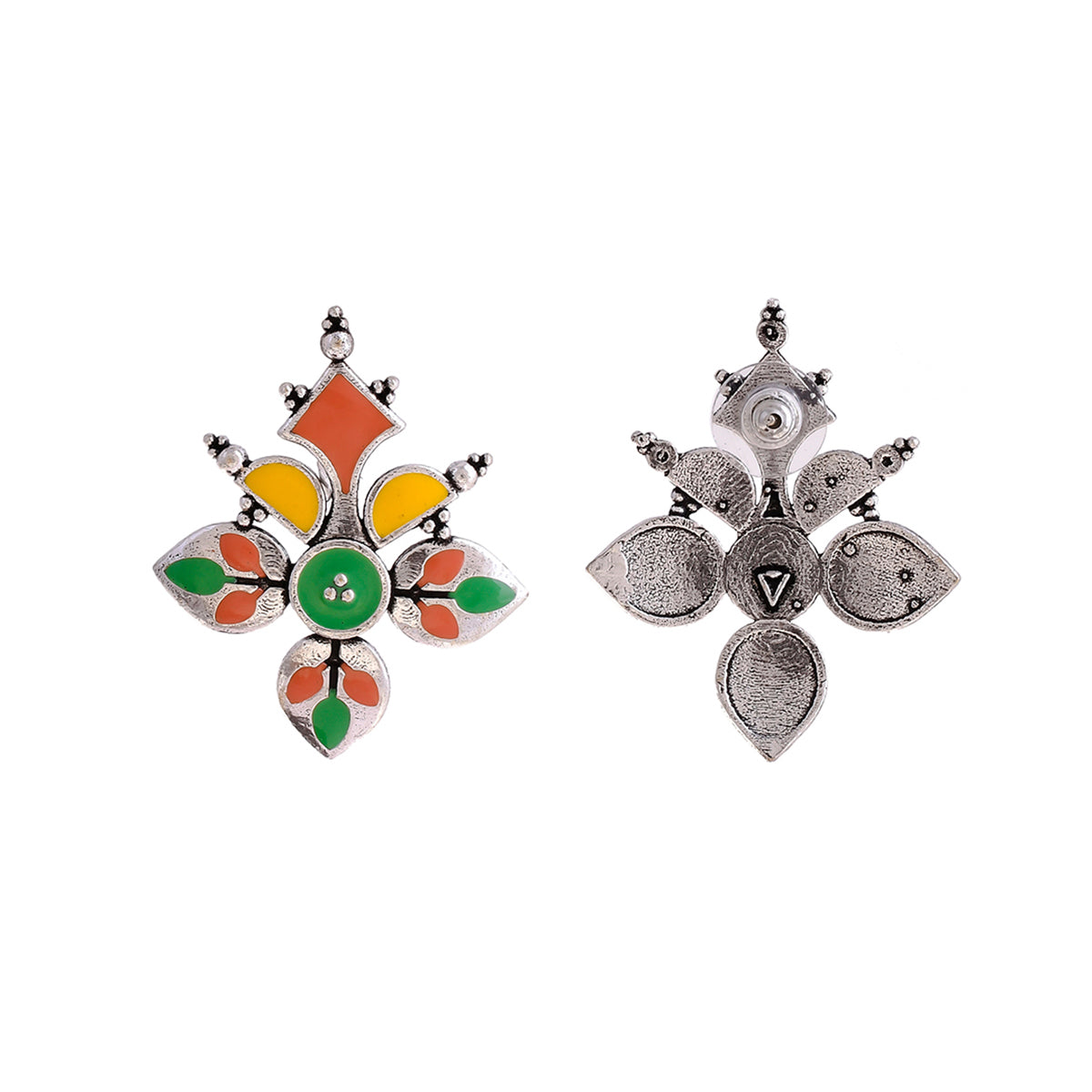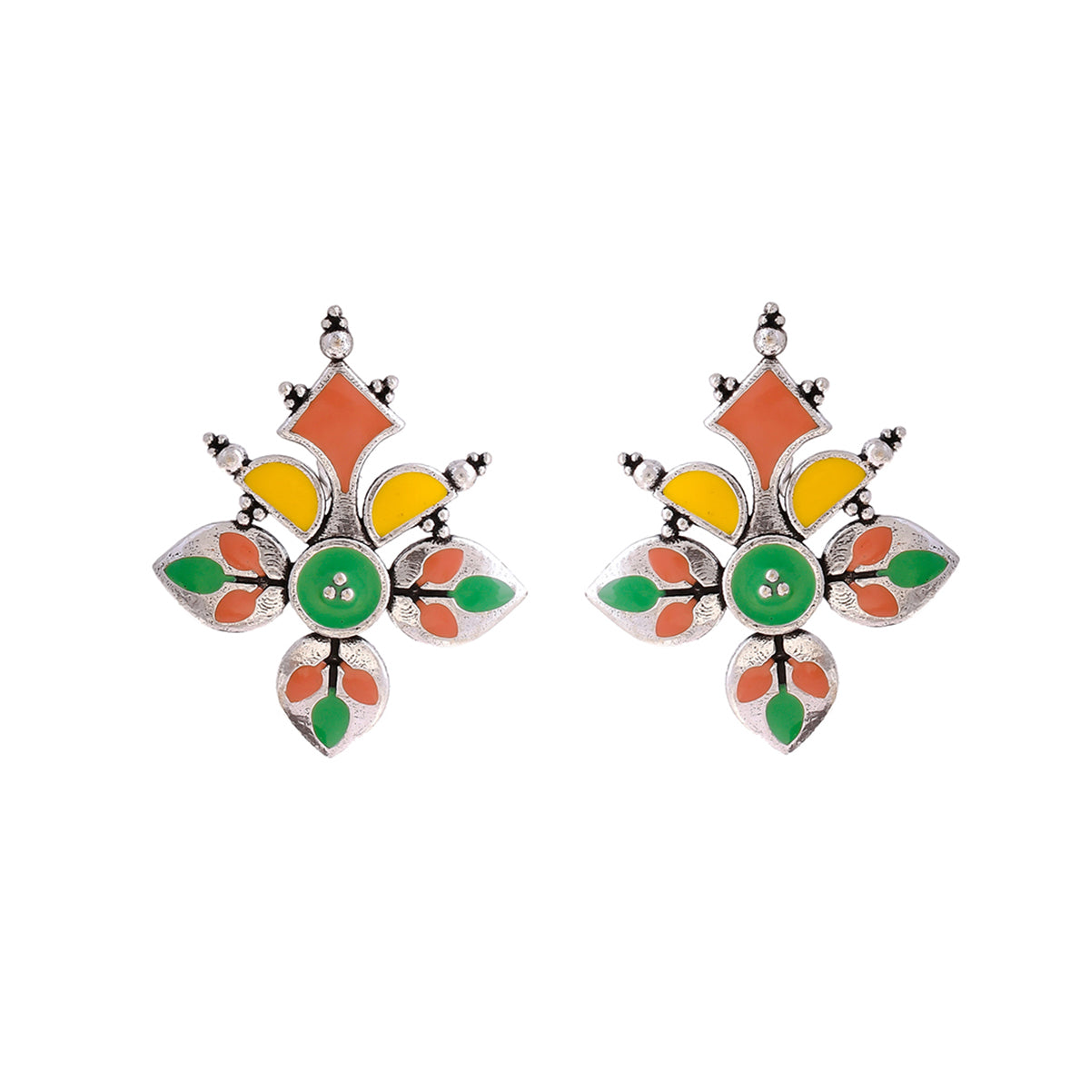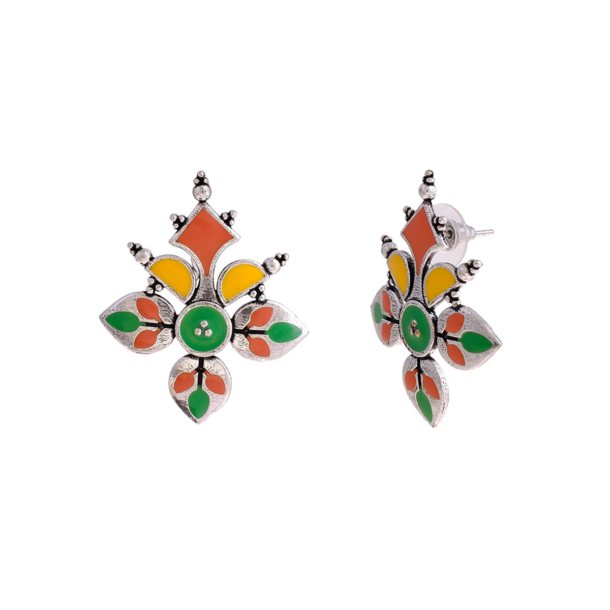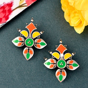 Madhubani Phoolkari Fables Oxidised Enamel Earrings