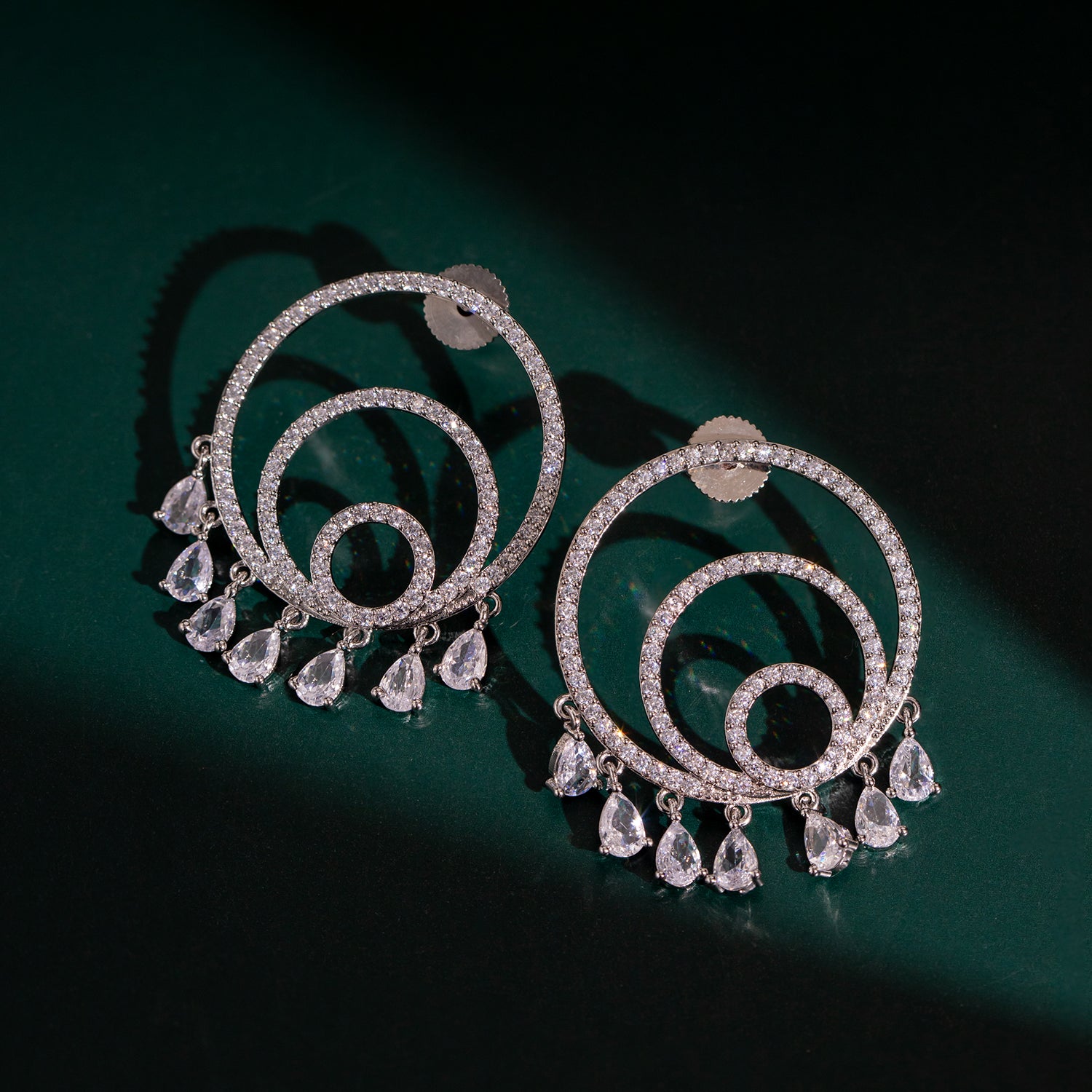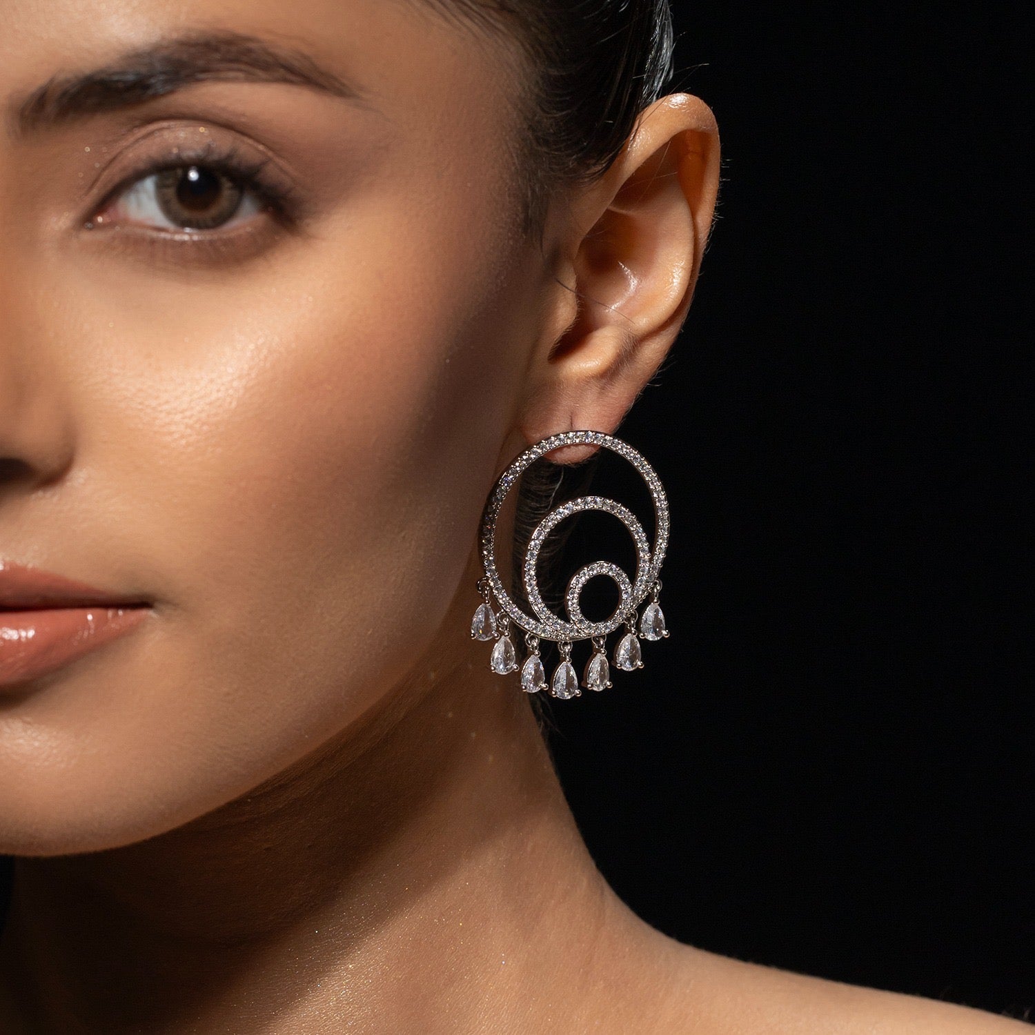 Turn heads with the Halo Essence "Ring of Light" Dangler Earrings, a luminous blend of elegance and statement sparkle. Inspired by the iconic halo diamond setting adored by celebrities and royalty, this chic pair showcases a brilliant CZ centerpiece encircled by shimmering American diamonds, all set in high-quality brass with radiant white rhodium plating. Whether you're dressing up for a cocktail evening, a festive Diwali gathering, or simply adding everyday glam, these earrings deliver timeless charm with modern versatility. Part of the coveted Halo Essence collection, their refined design glows beautifully against both western and ethnic outfits, think chiffon sarees, embellished lehengas, or sleek evening gowns. A stunning gifting pick for Valentine's Day, Rakshabandhan, Christmas, or New Year, these earrings are sure to delight women of all ages sisters, girlfriends, wives, mothers, or even yourself. Stylish, graceful, and heirloom-worthy, they effortlessly blend bling with subtle sophistication