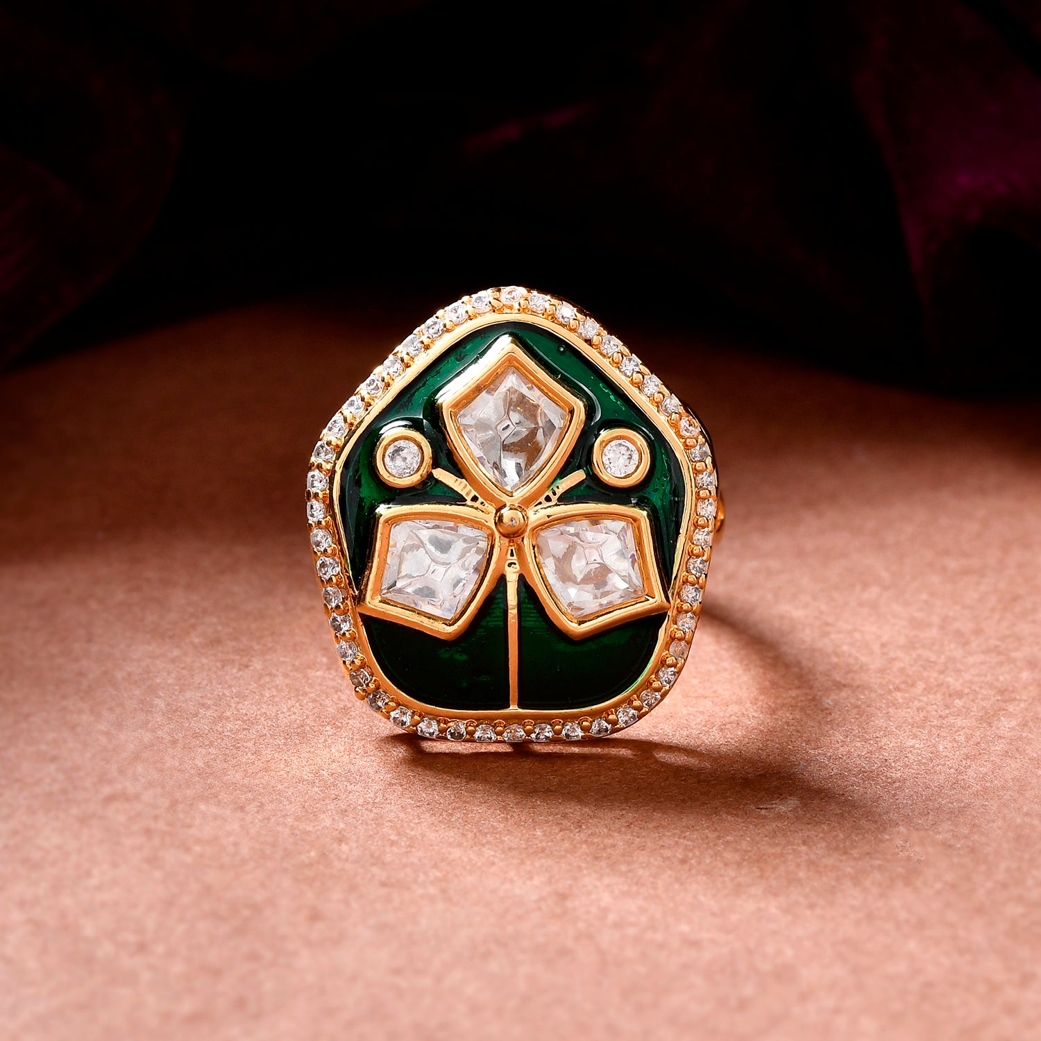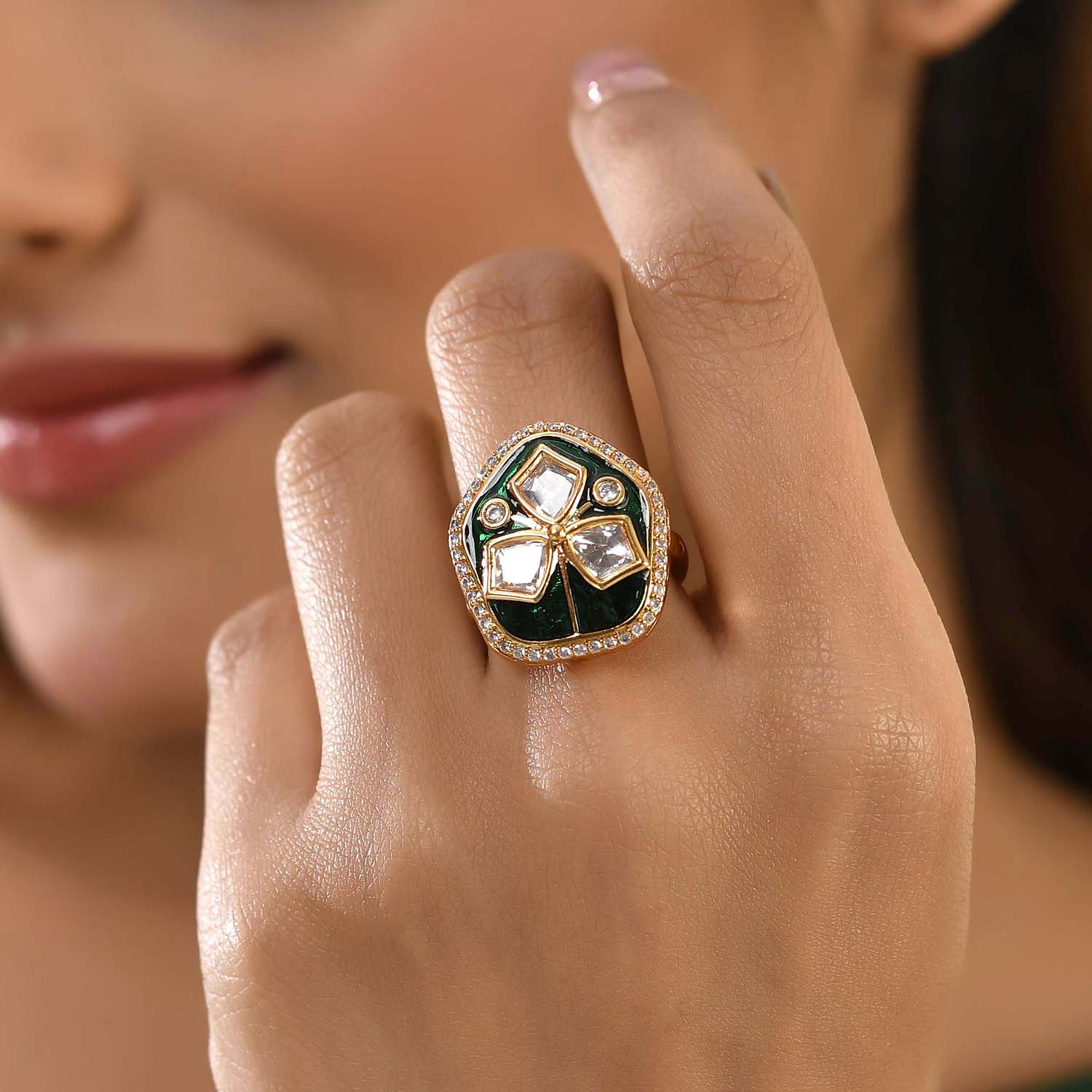 Kundan Elegance Meena Glow Ring