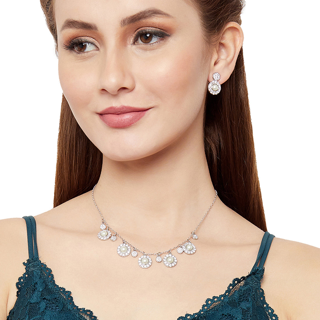 An absolute stunner, this showstopper necklace set from Pearly Whites collection will turn the spotlight on your elegant neckline. Perfect for sharp cut outfits and swept up hairstyles.