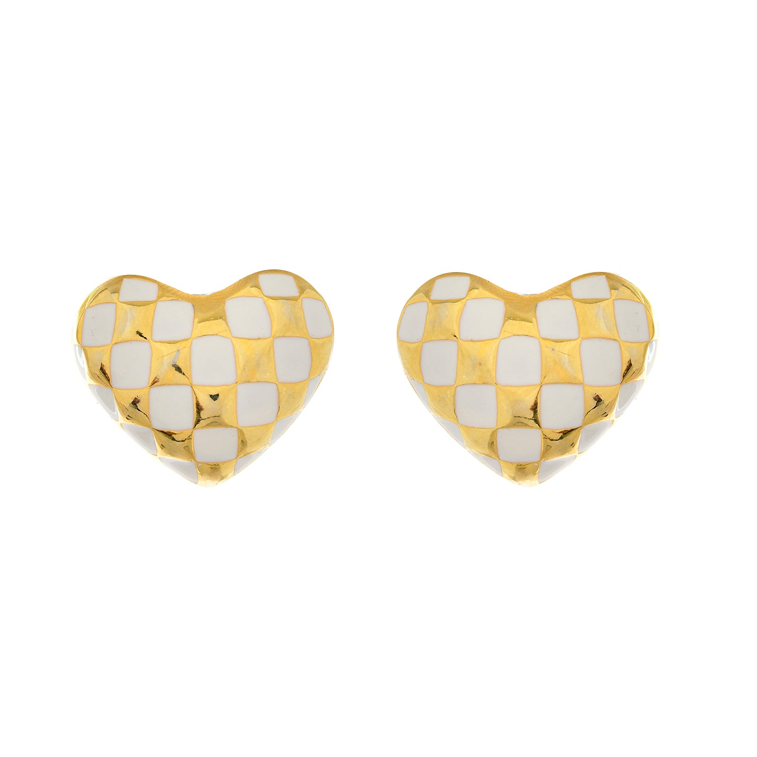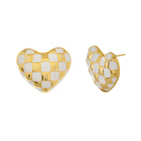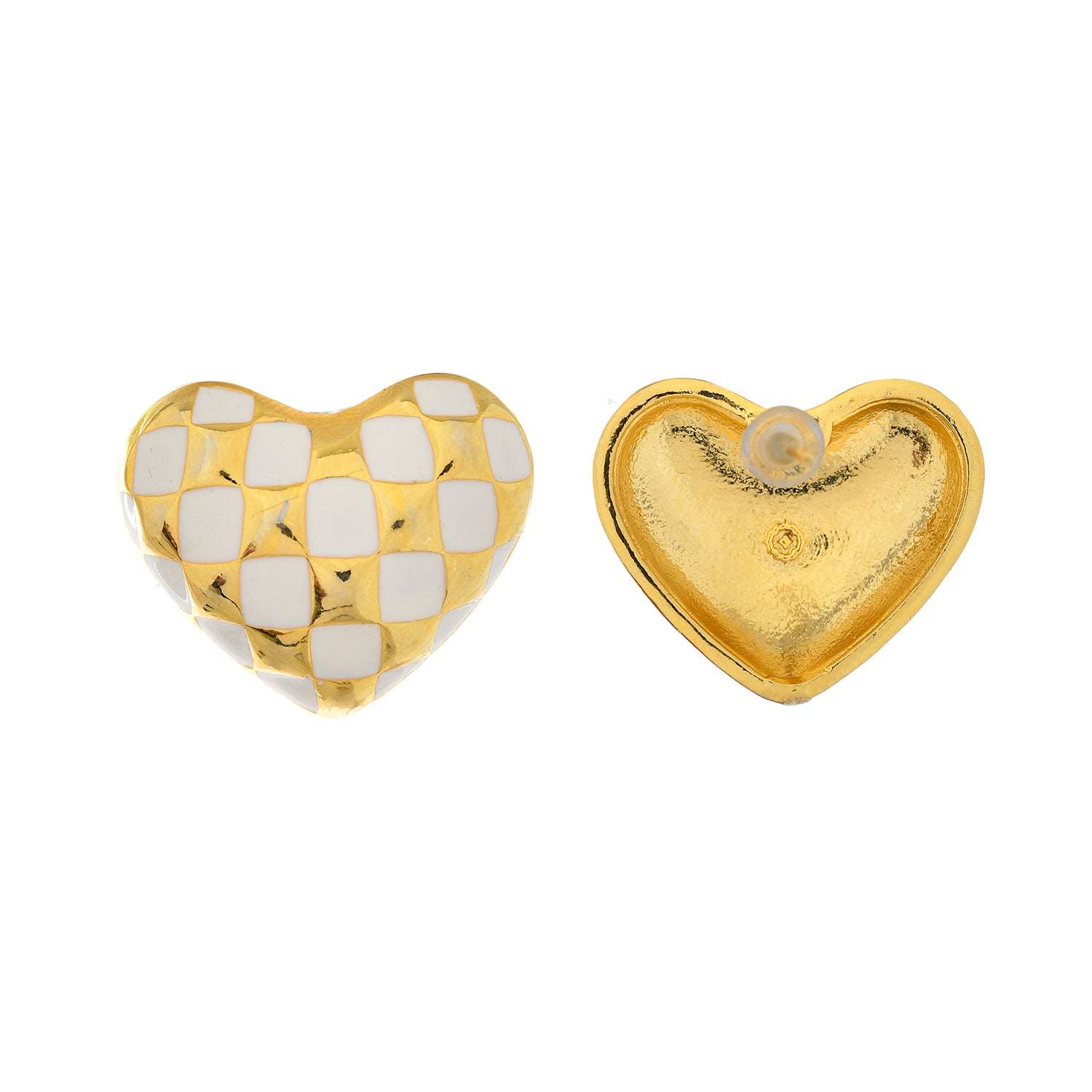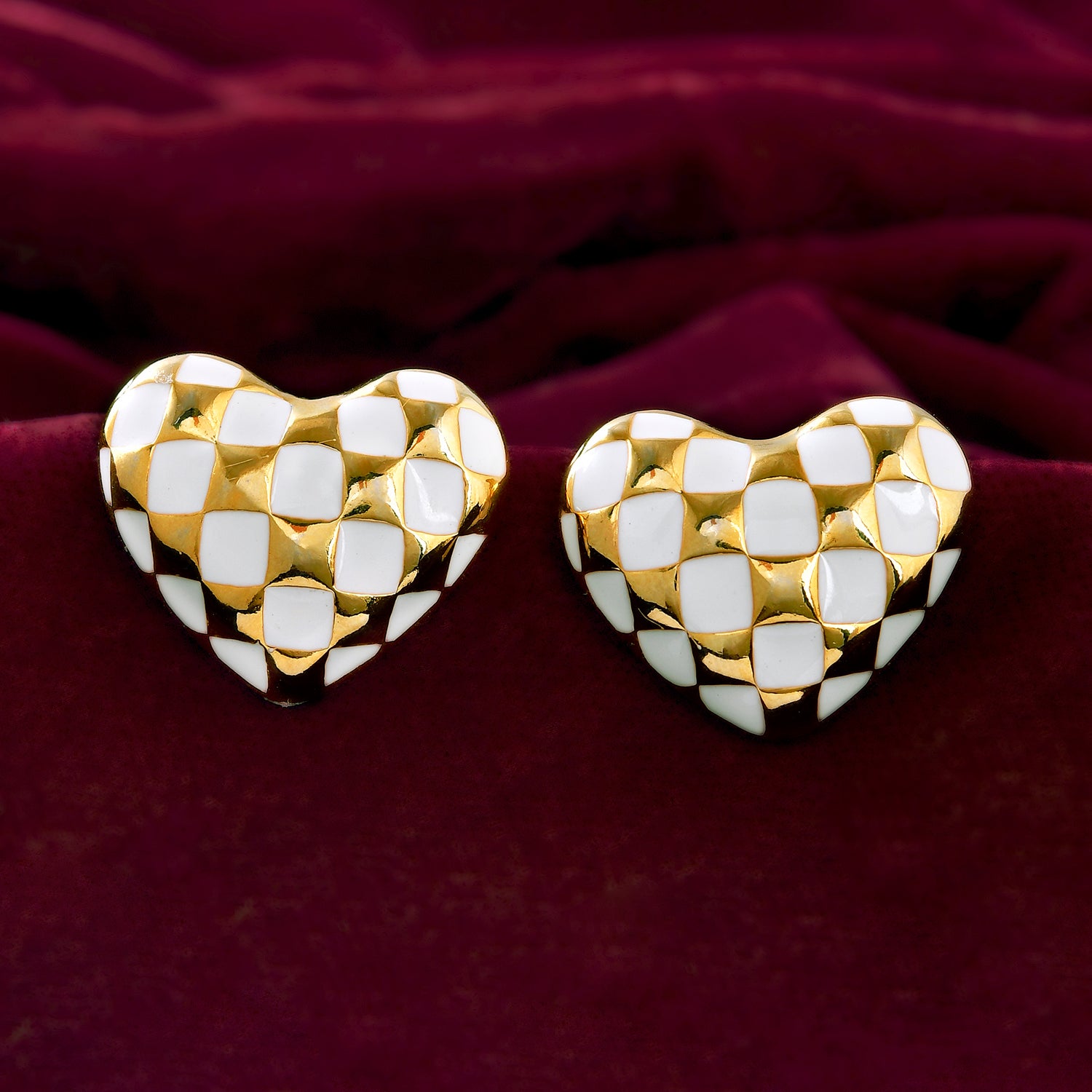 Unveil a world of elegance with the Trendy Candy Heart Stud Earrings. These exquisite earrings feature a captivating heart-shaped design adorned with a sophisticated checkerboard pattern in white and gold. Expertly crafted from high-quality brass and plated in luxurious gold, they promise exceptional durability and a timeless allure. A signature piece in the Trendy Earrings collection, these studs effortlessly transition from casual daywear to chic evening attire, making them a versatile addition to any wardrobe. Whether you're dressing up for a festive celebration, a wedding, or a romantic dinner, these earrings are the perfect finishing touch. Gift them to the special women in your life—be it your sister, girlfriend, wife, mother, or friend—for occasions like Valentine's Day, Diwali, Rakshabandhan, Christmas, New Year, or just because. These earrings are more than just an accessory; they're a symbol of love and appreciation.