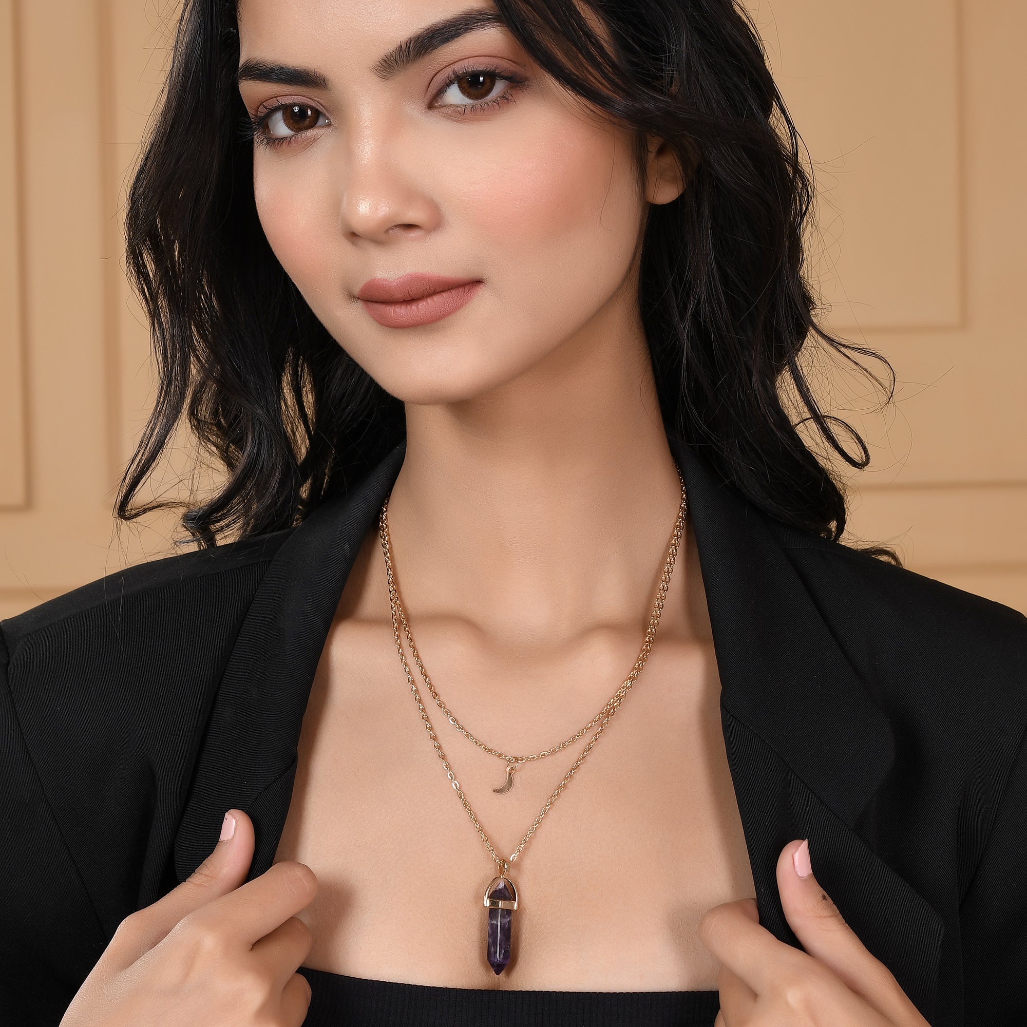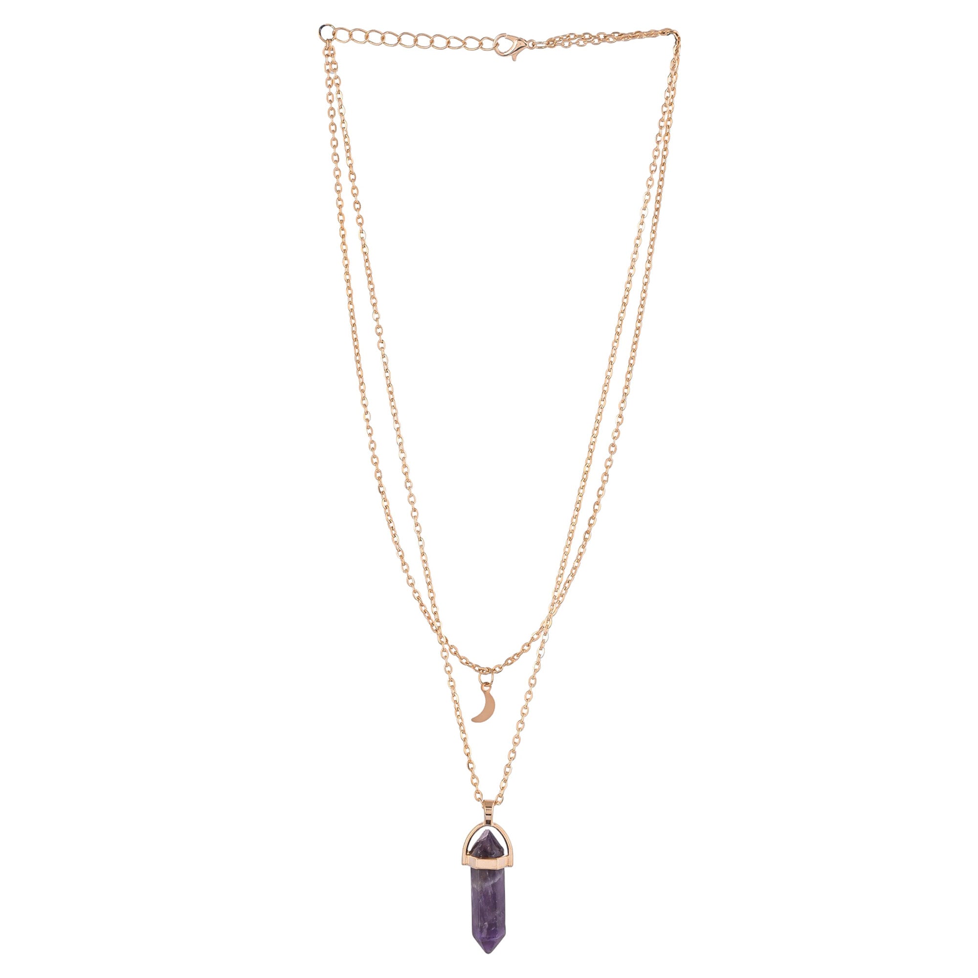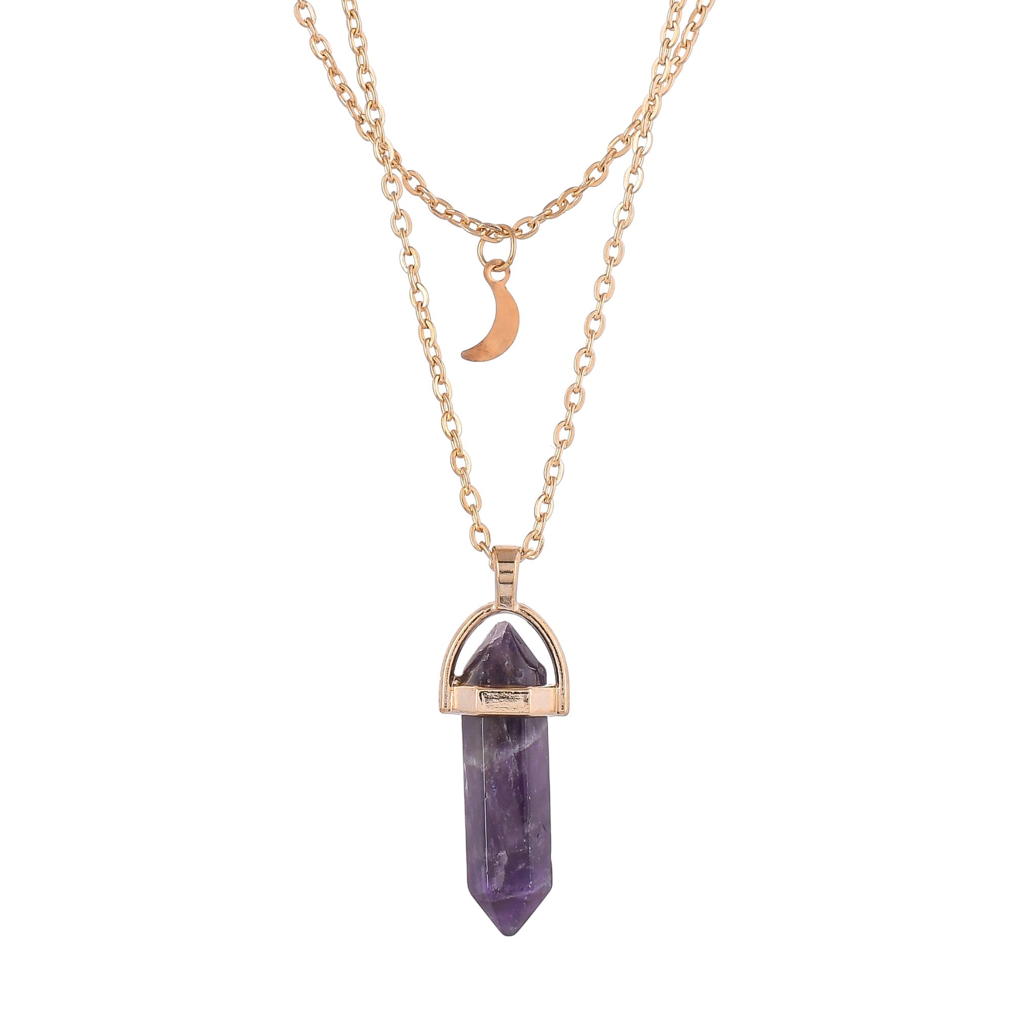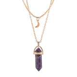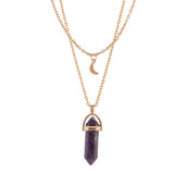 Purple Crystal And Moon Charm Gold-Plated Necklace