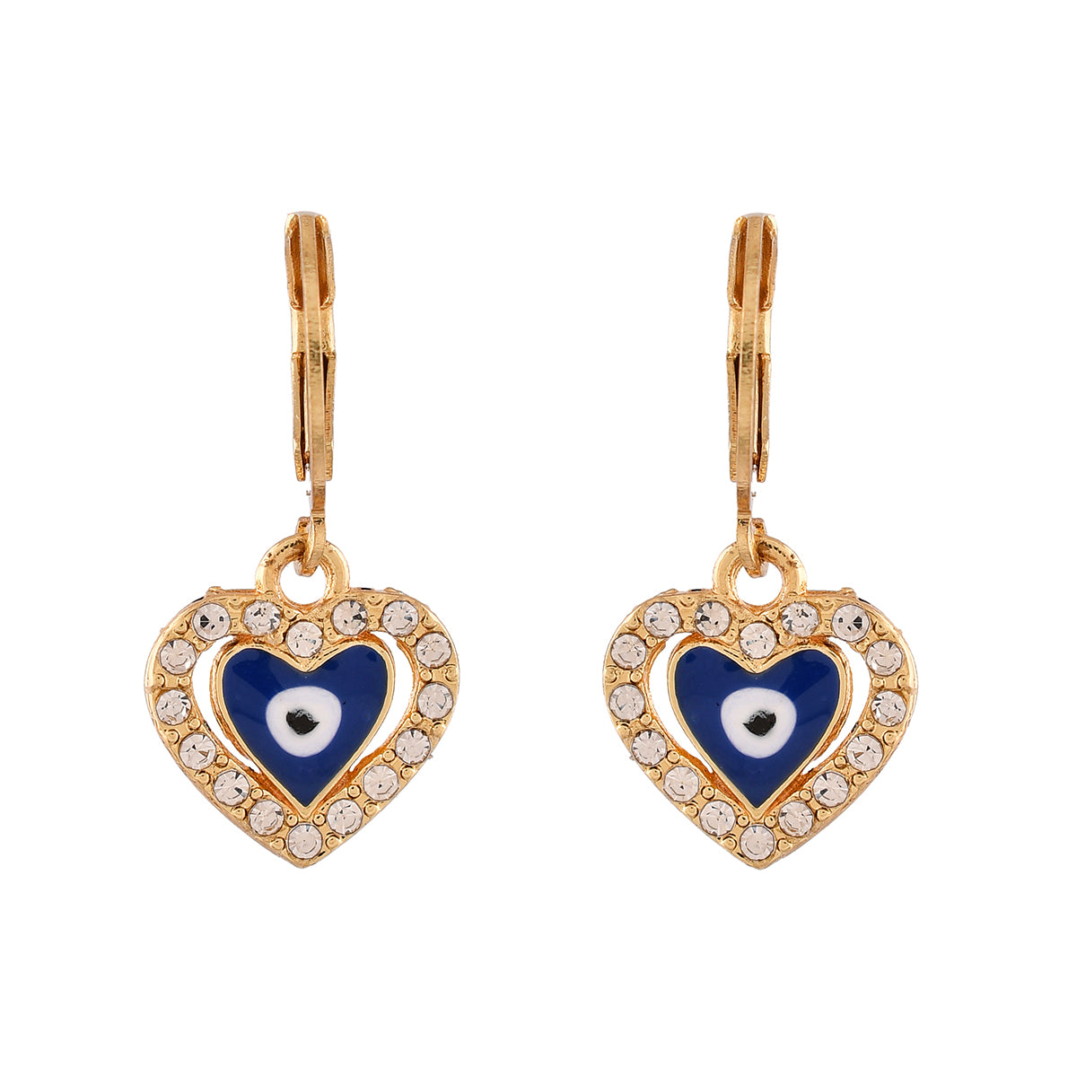 Tiny drop earrings with round cut CZ gemstones. The heart shaped earrings with floral motif and light blue enamel have been fashioned out of brass. Gold plated for added charm and perfect for V-Day gifting.Caring for your fashion jewelry: We,...