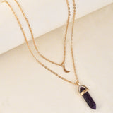 Purple Crystal And Moon Charm Gold-Plated Necklace