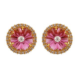 The perfect gift for Valentine's Day,Quirky heart shaped stud earrings and ring featuring a geometric pattern and coloured enamel. Embellished with round cut CZ gemstone, the brass earrings have been given a gold plating. Bound to make V-Day extra special.Caring...