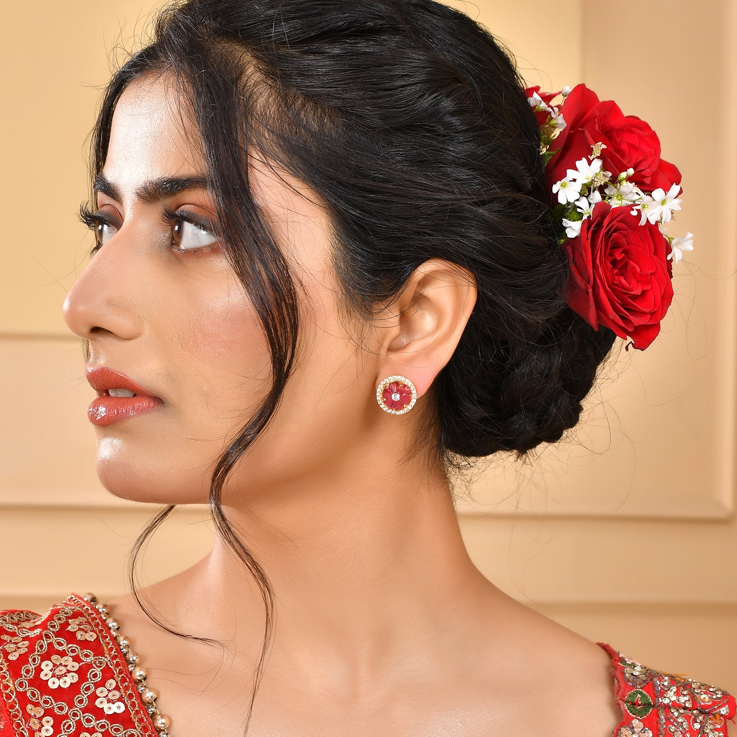This Valentine's Day combo has LQuirky heart shaped stud earrings featuring a geometric pattern and coloured enamel. Embellished with round cut CZ gemstone, the brass earrings have been given a gold plating with A classic, fashionable red and white dial...