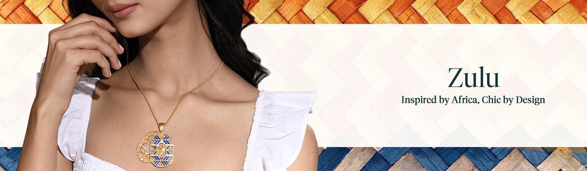 Our Zulu Jewelry Collection embraces the essence of basketry, generating motifs inspired by the mesmerizing patterns of Zulu weaves. The designs feature bold and minimal silhouettes, expertly crafted in oxidized metal with enamel detailing, accentuated by beads that enhance the overall aesthetic. Raffia, another indigenous material, adds an extra layer of authenticity to our collection.