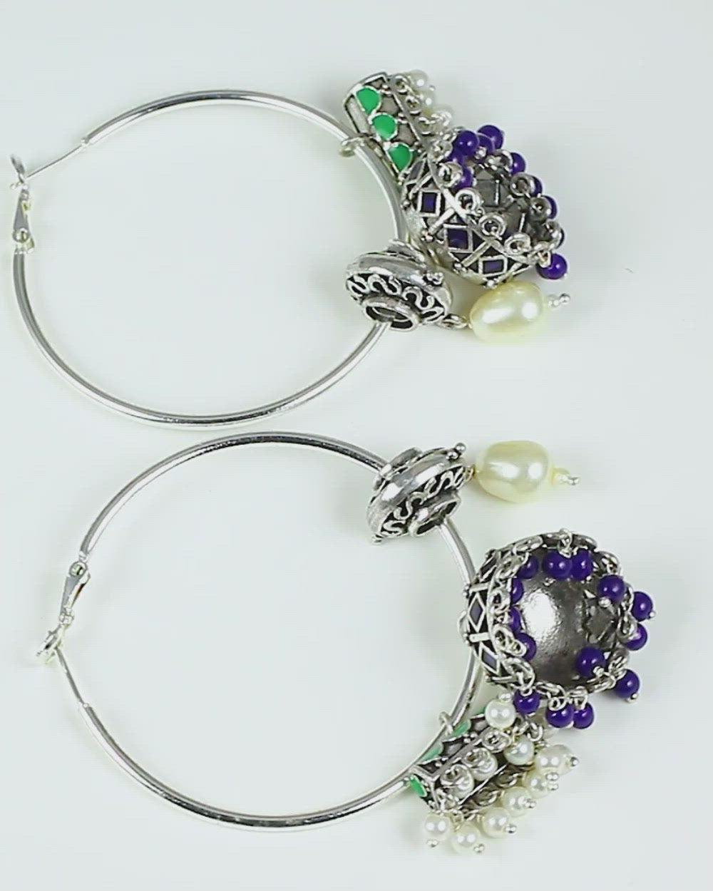 Slip on 4 different styles - pearl drop and oxidised jhumkis - to interchangeable hoop earrings. Great for college wear.