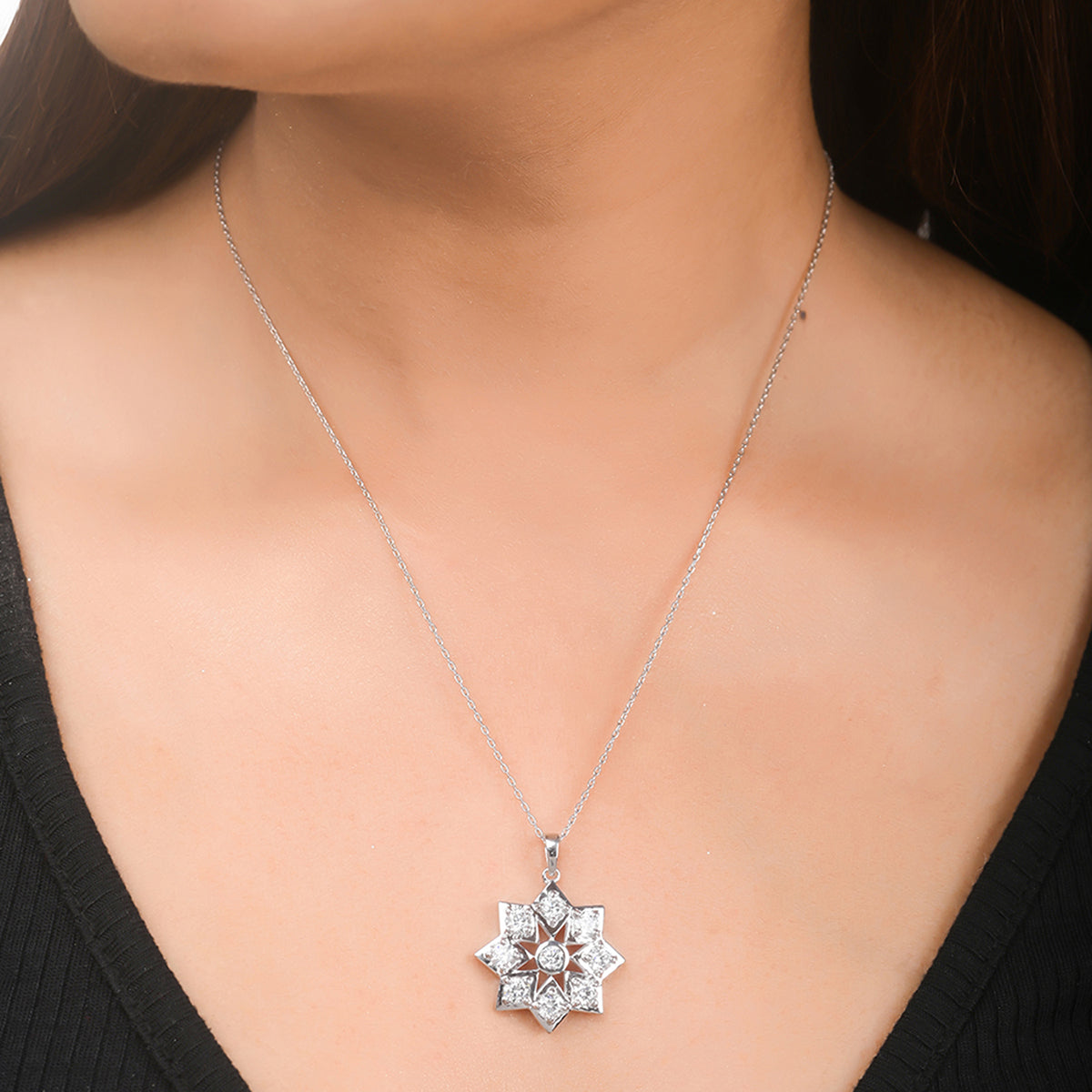 925 Sterling Silver CZ Flower Shape Diamond Pendant