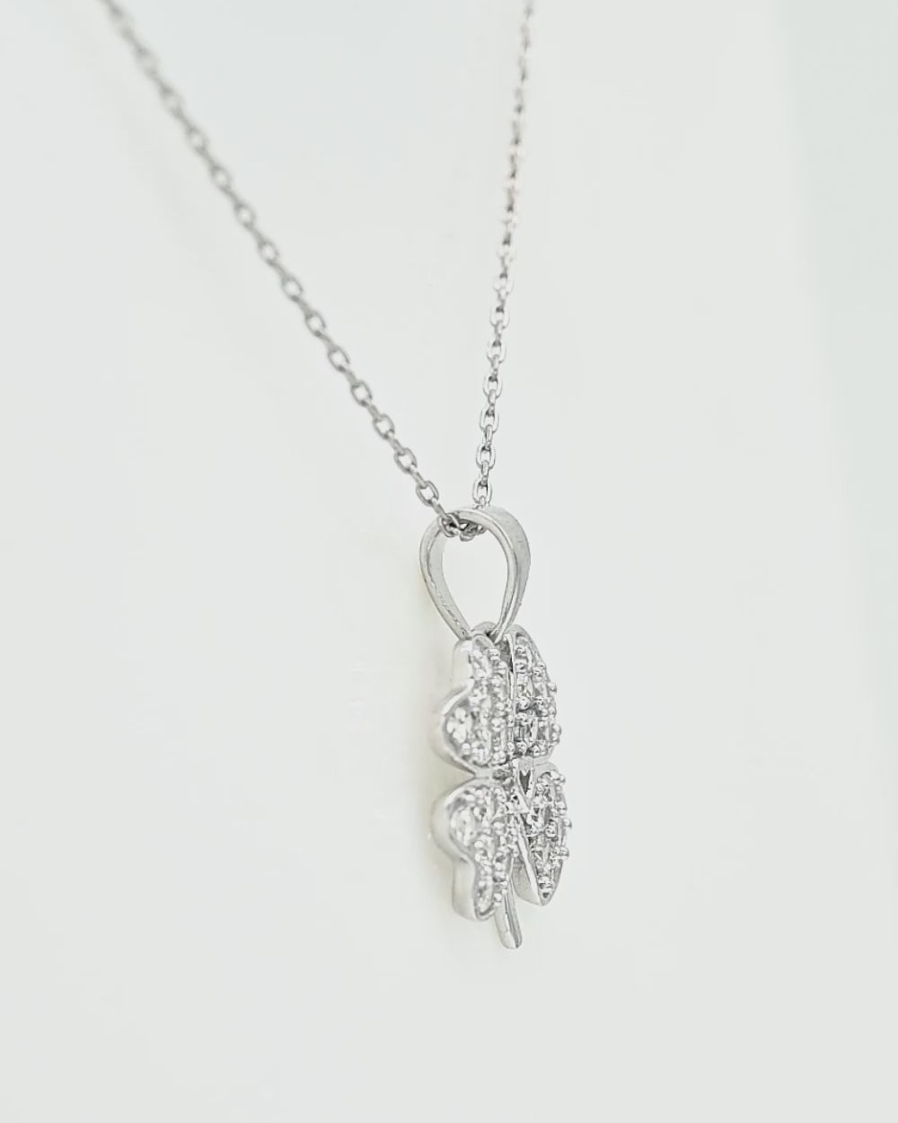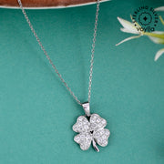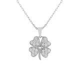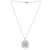 925 Sterling Silver CZ Clover Floral Pendant with Chain