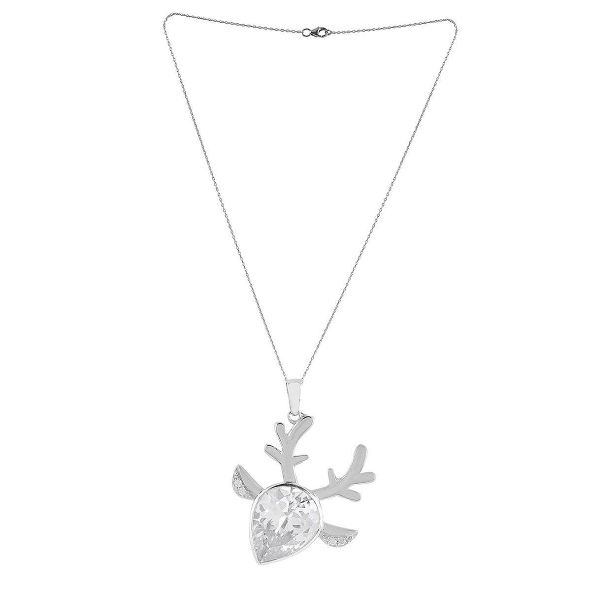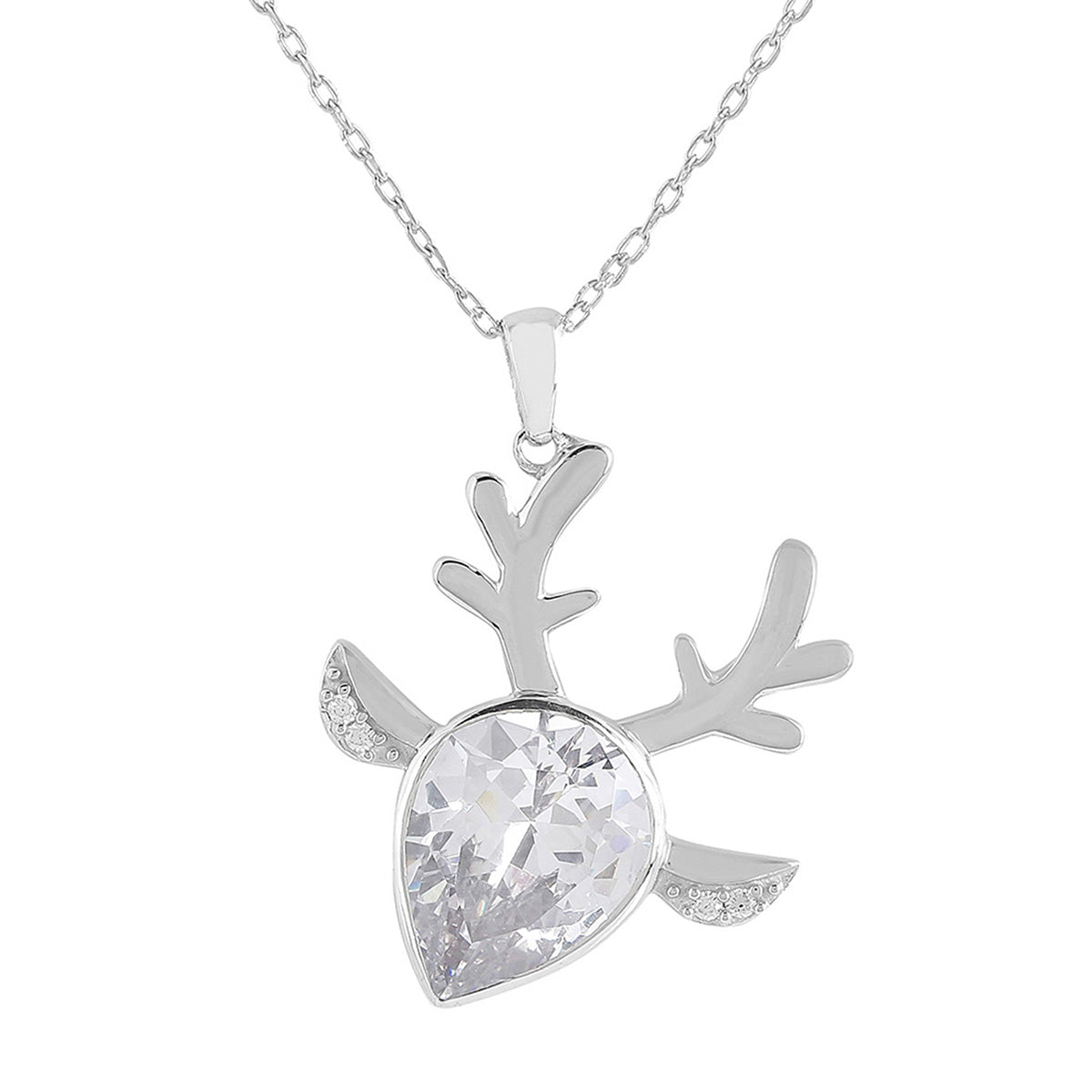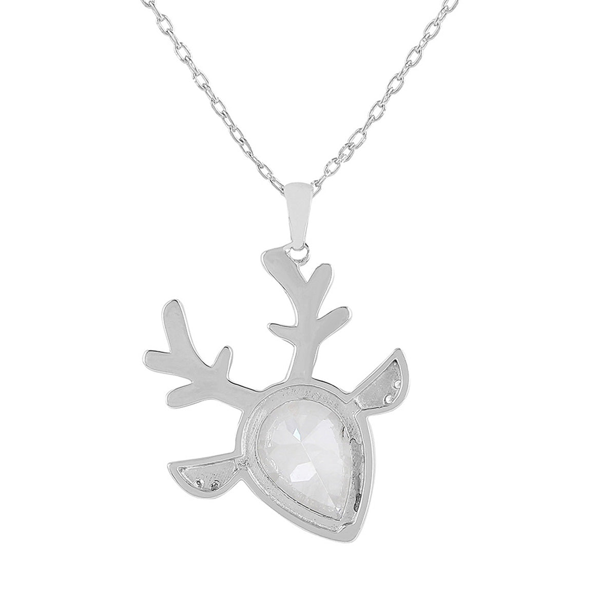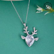 925 Sterling Silver CZ Deer Shaped Pendant with Chain